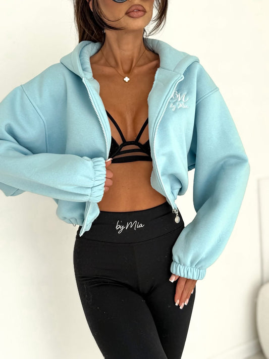 Sweatshirt Damen mit Reißverschluss und Kapuze | Hellblau
