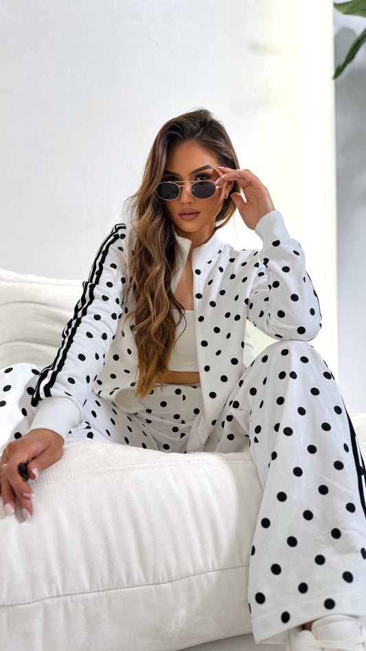 Zweiteiler Sportanzug Madrik gepunktet Weiß- Schwarz