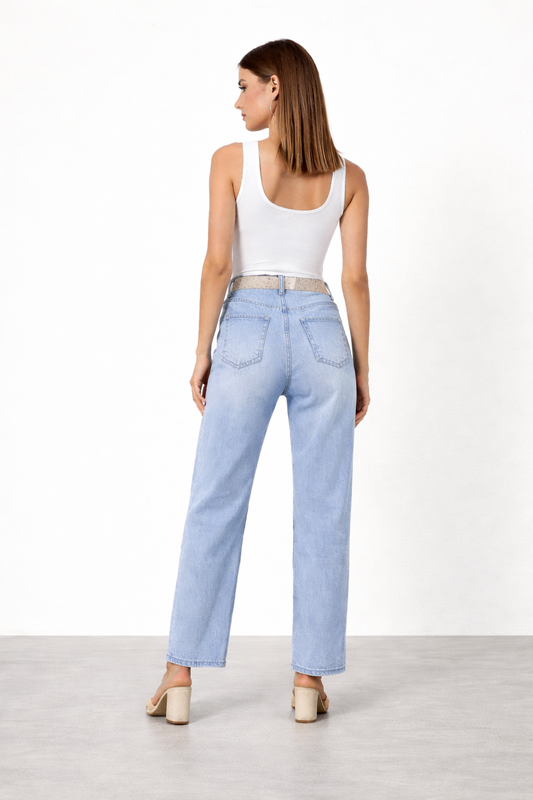 High Waist Jeans weite Beine mit Abschürfungen