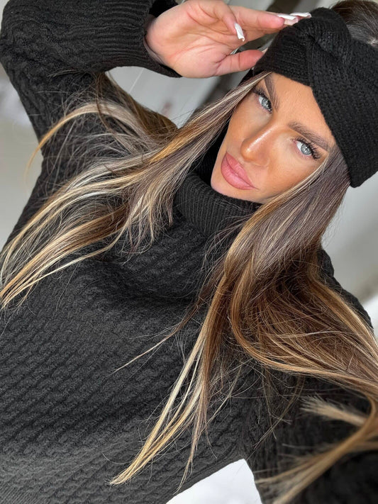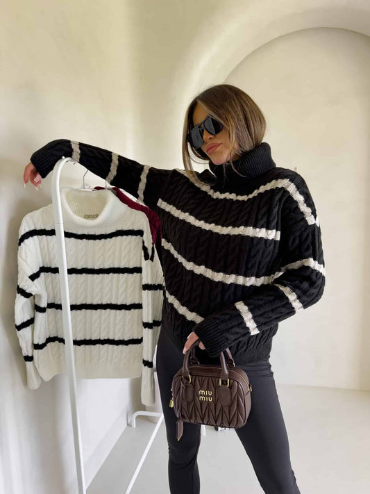 Rollkragenpullover INKO Streifen - schwarz -beige