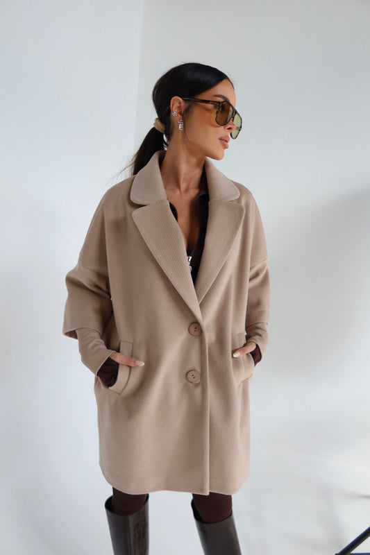 Elegante Damenmantel ETERNAL LA MANUEL Dunkelbeige One Size