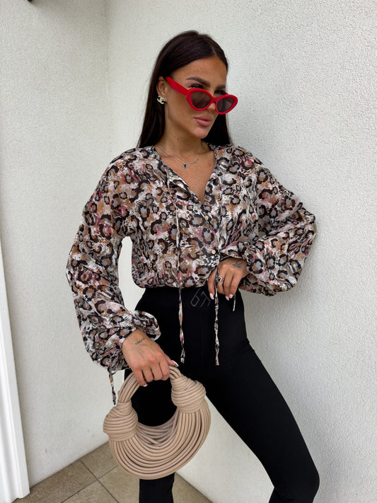 Damenbluse KAIRA Muster Panther– beige-schwarz