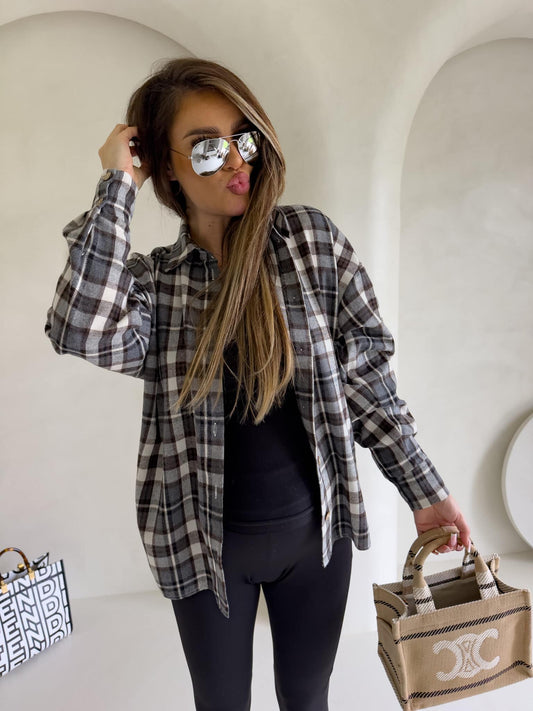 WyprzedaneKariertes Hemd KRATA - SCHOKOBRAUN