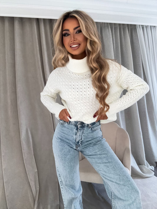 Rollkragenpullover INKO Streifen- ecru-schwarz