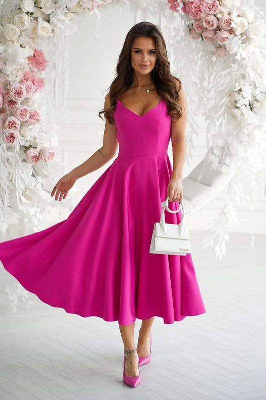 Midi Kleid Rosa mit dünnen Trägern Rückenfrei