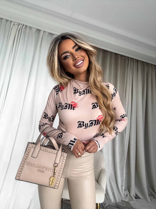 WyprzedaneDamenbluse SKIN print LOGO – beige