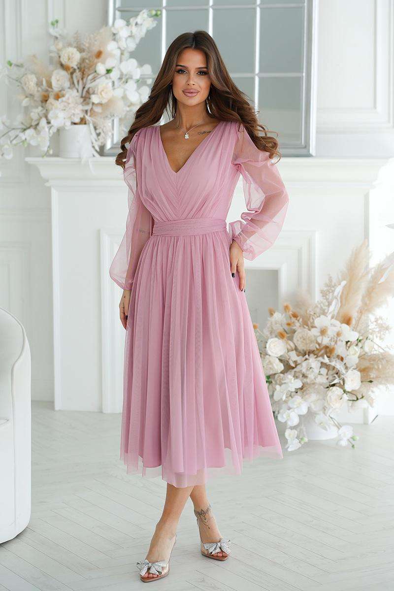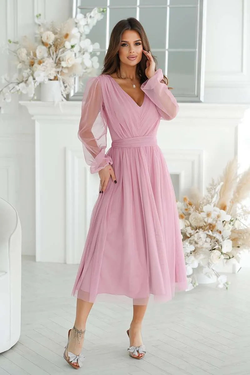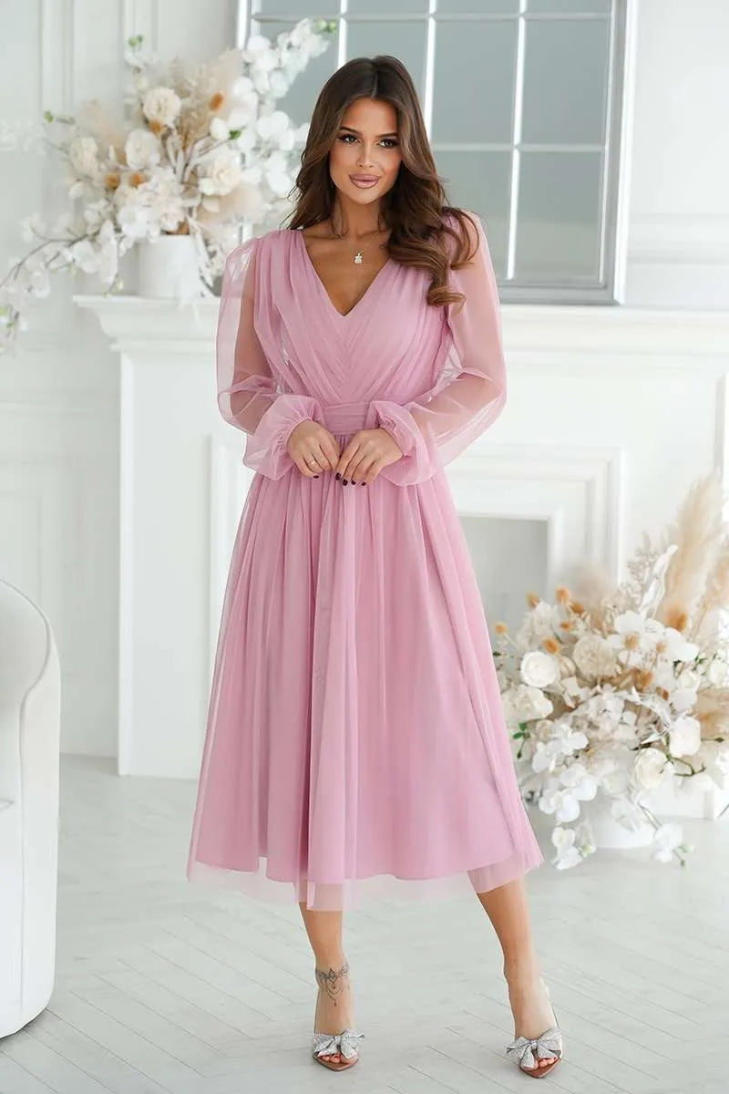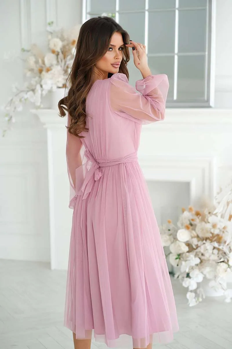 Abendkleid Midi Rosa mit Glitzer Tüll