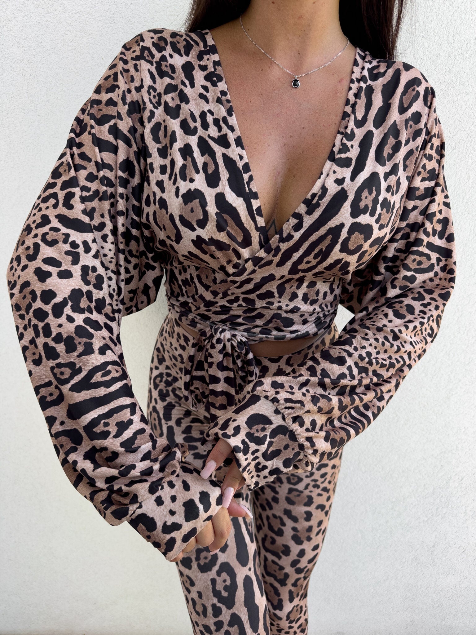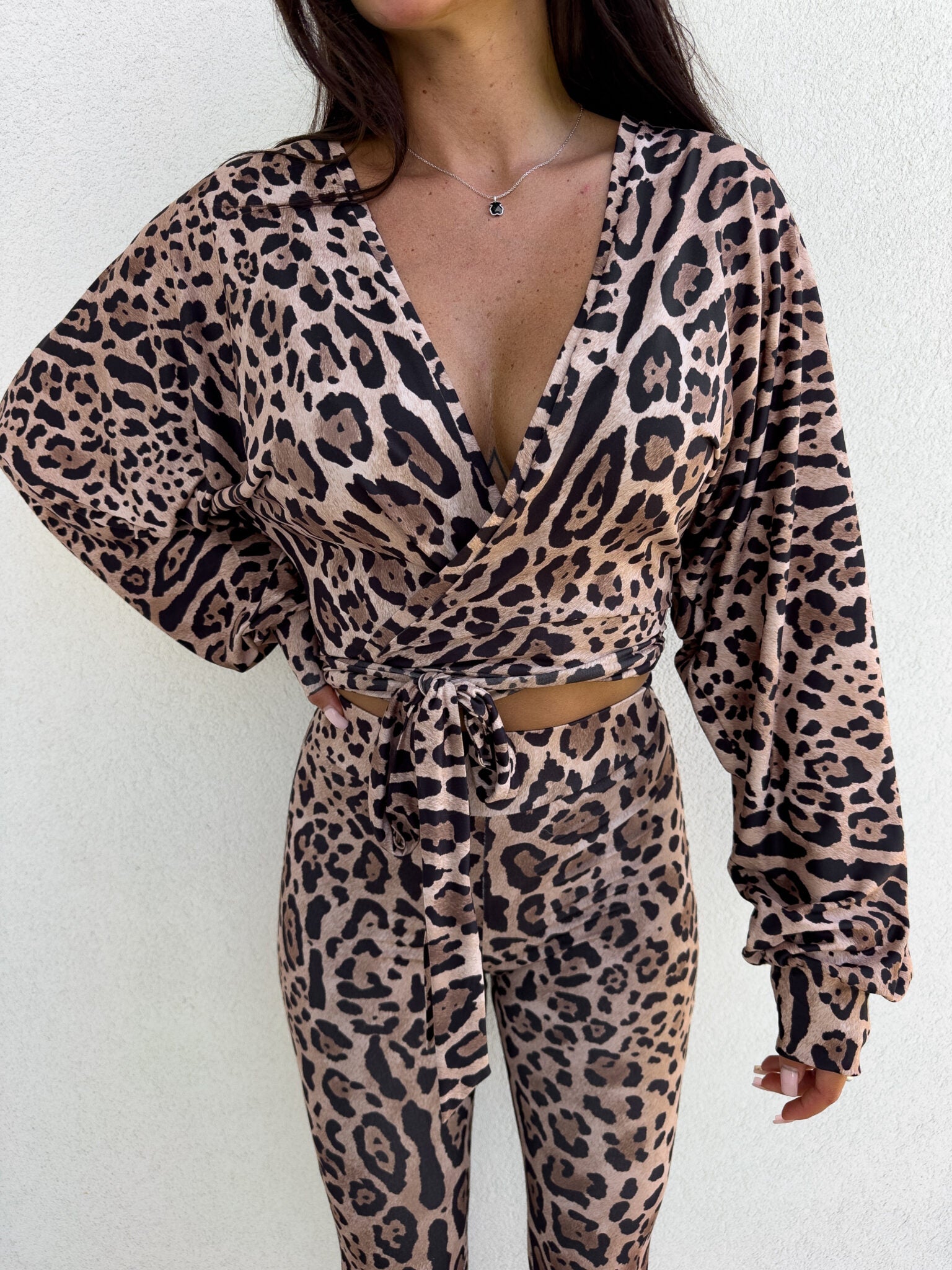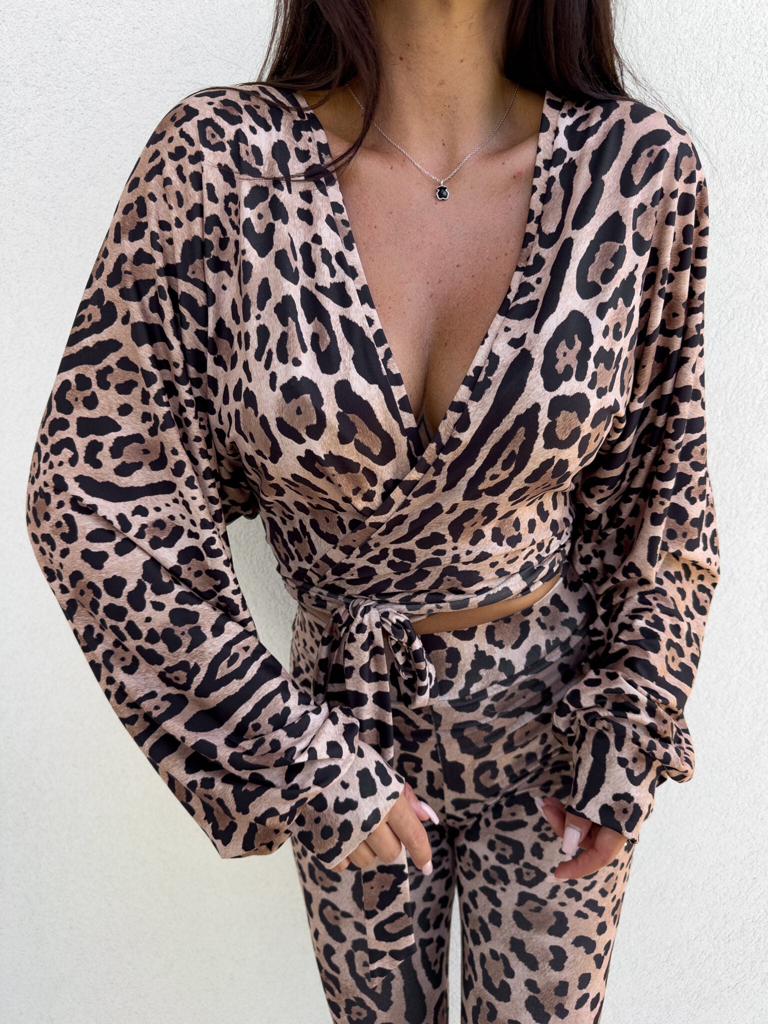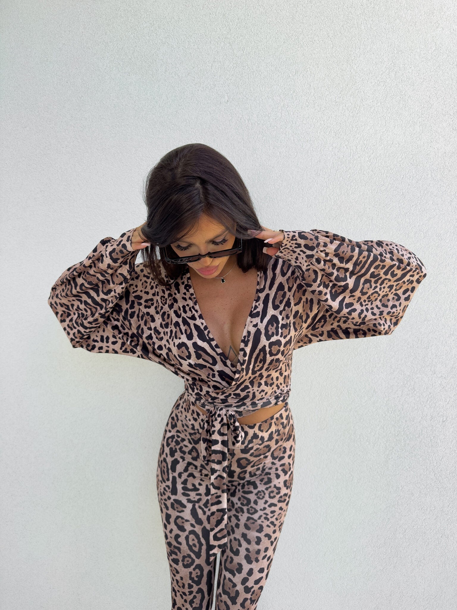 Damenbluse KAIRA Muster Panther– beige-schwarz