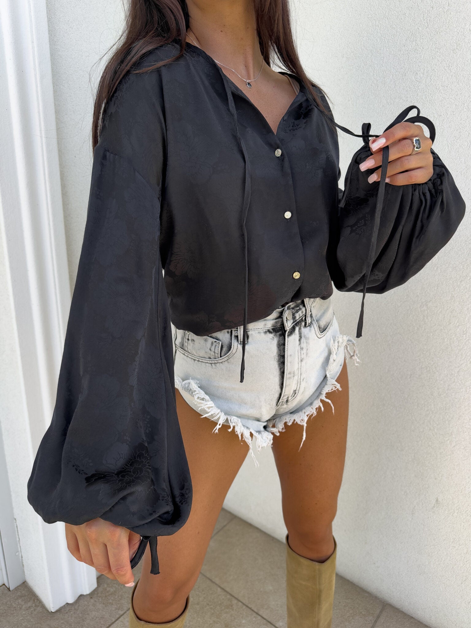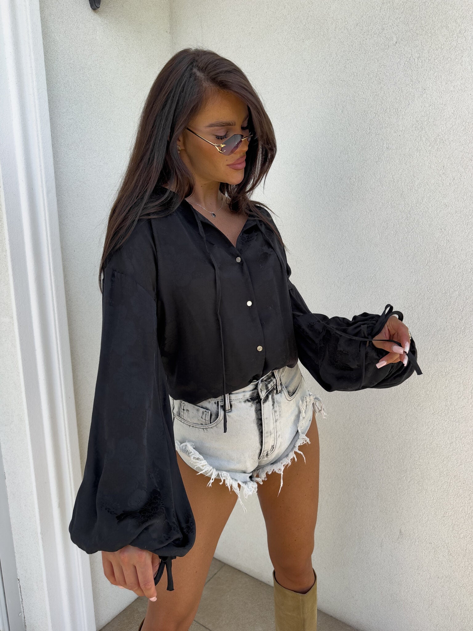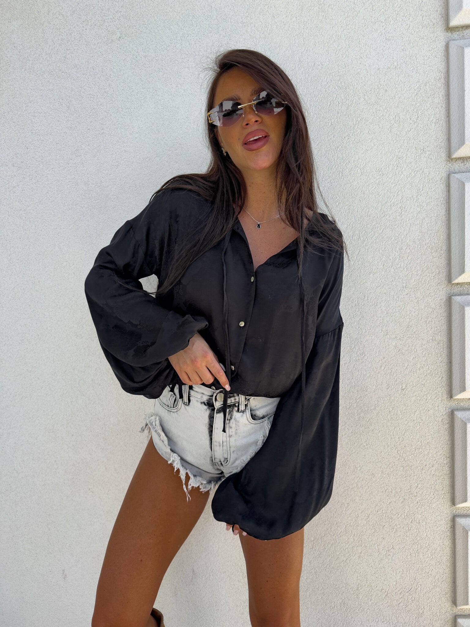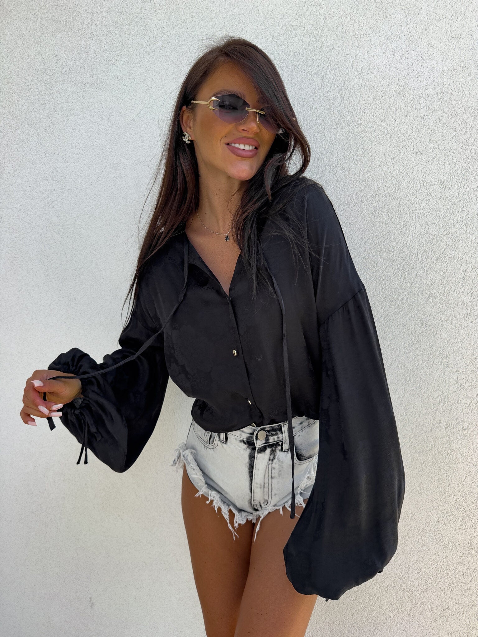 Der lockere Oversize-Schnitt ist eine Garantie für Komfort und Bewegungsfreiheit und gleichzeitig ein modischer Akzent in jedem Styling. Die Bluse hat einen Ausschnitt mit einer charmanten Krawatte für einige, die dem Ganzen Leichtheit und einen romantischen Charakter verleihen. Die mit etwas Bindung versehenen Buffy-Ärmel schaffen eine spektakuläre Form. Perfekt für Jeans, hoch taillierte Hosen oder Röcke - für den Alltag und besondere Anlässe.