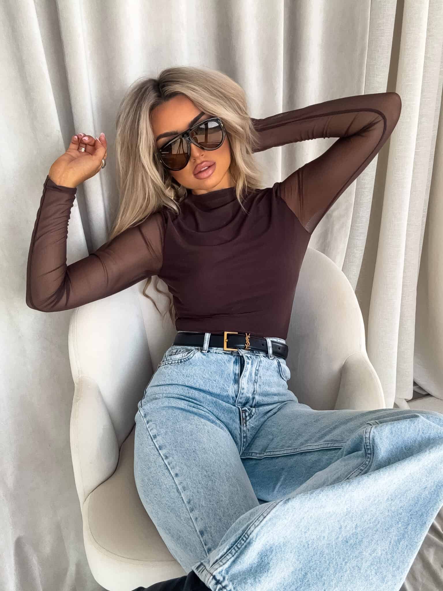 Die SKIN-Bluse mit tailliertem Schnitt dient als Basis für viele verschiedene Stylings. Hergestellt aus einem sehr empfindlichen Netz, das sich angenehm anfiert. Vorder- und Rückseite mit einem zarten Futter, dank dem nichts durchscheint. Es zeichnet sich durch einen langen Ärmel aus. Sein Schnitt garantiert Komfort und Tragekomfort. Zarter Stand-up-Kragen.