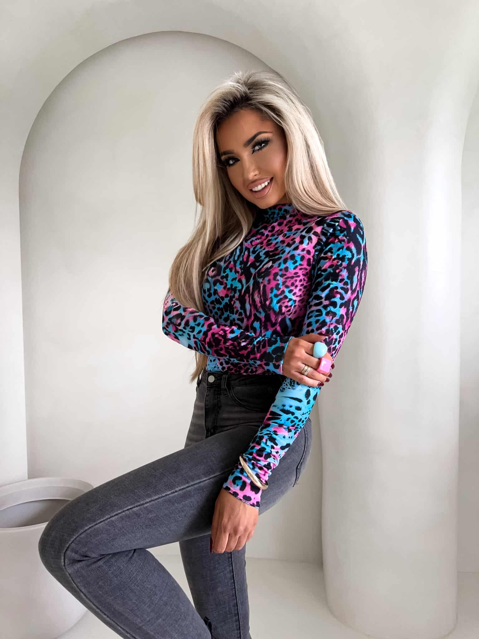 Damenbluse SKIN print Panther – lazur