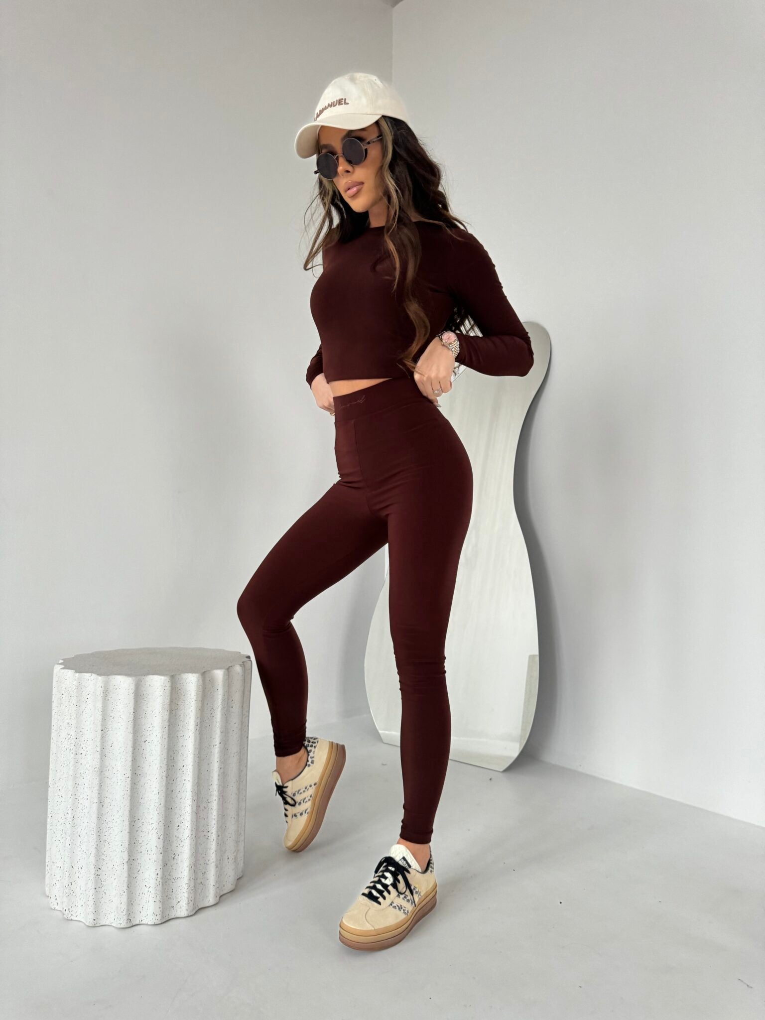 Stylisches Set aus Crop-Top und Leggings. Dieses Set besteht aus einem langärmligen, figurbetonten Crop-Top und dazu passenden hochgeschnittenen Leggings, die eine schmeichelhafte Silhouette zaubern. Hergestellt aus weichem, elastischem Material für maximalen Komfort und Bewegungsfreiheit. Perfekt für den Alltag, gemütliche Stunden zu Hause oder sportliche Aktivitäten. Kombinieren Sie es mit Ihren Lieblingsaccessoires, um den Look zu vervollständigen!