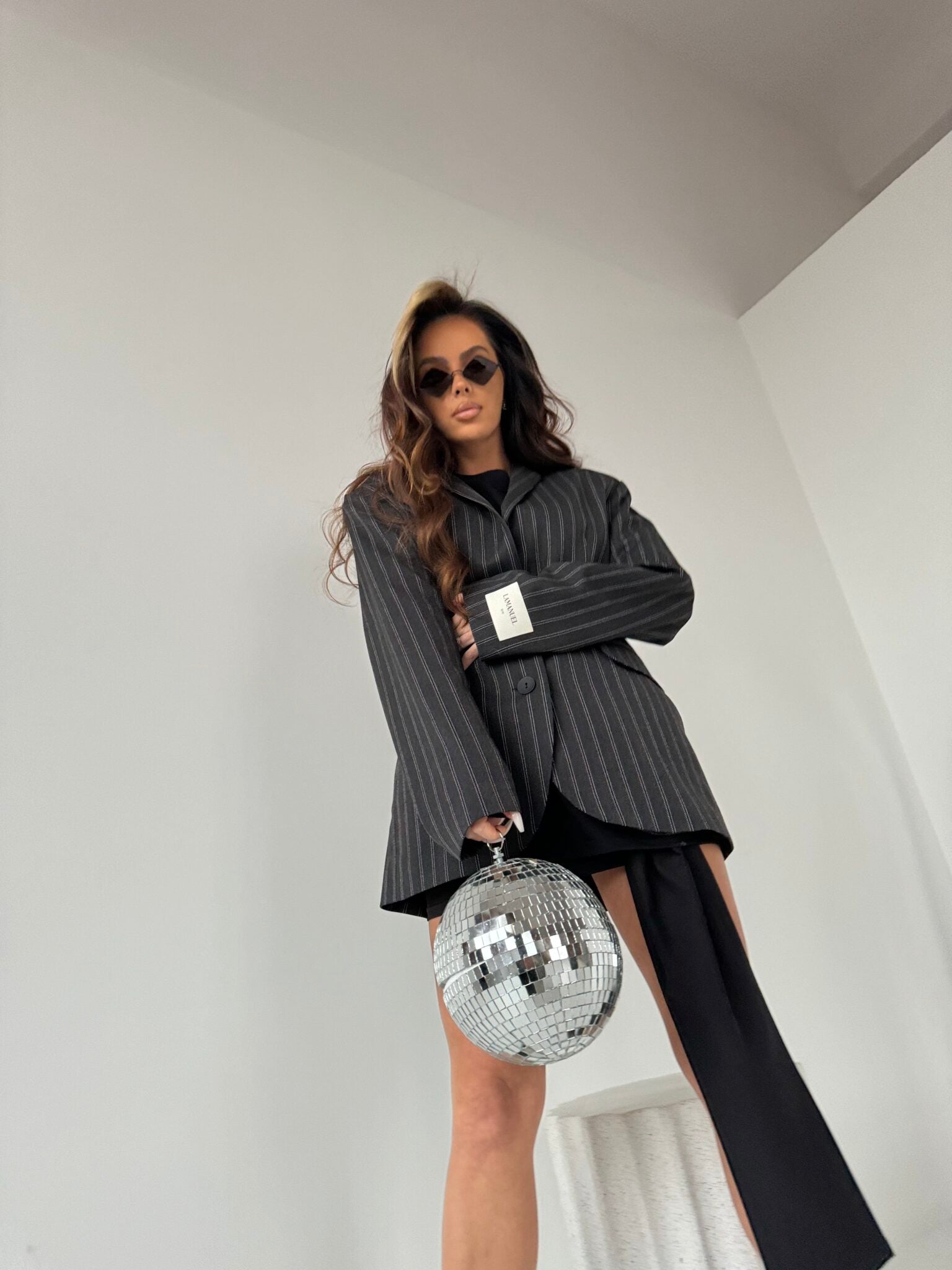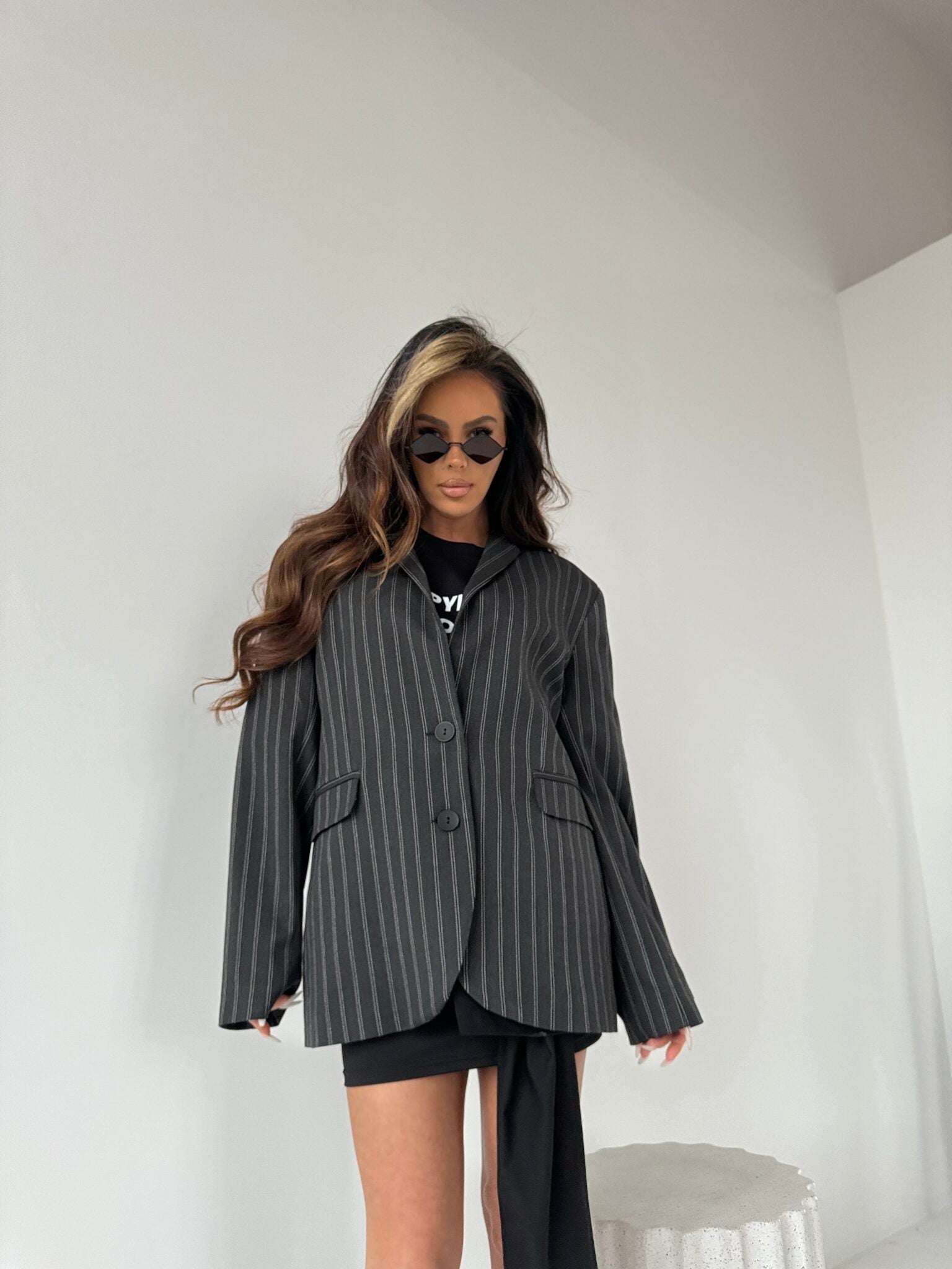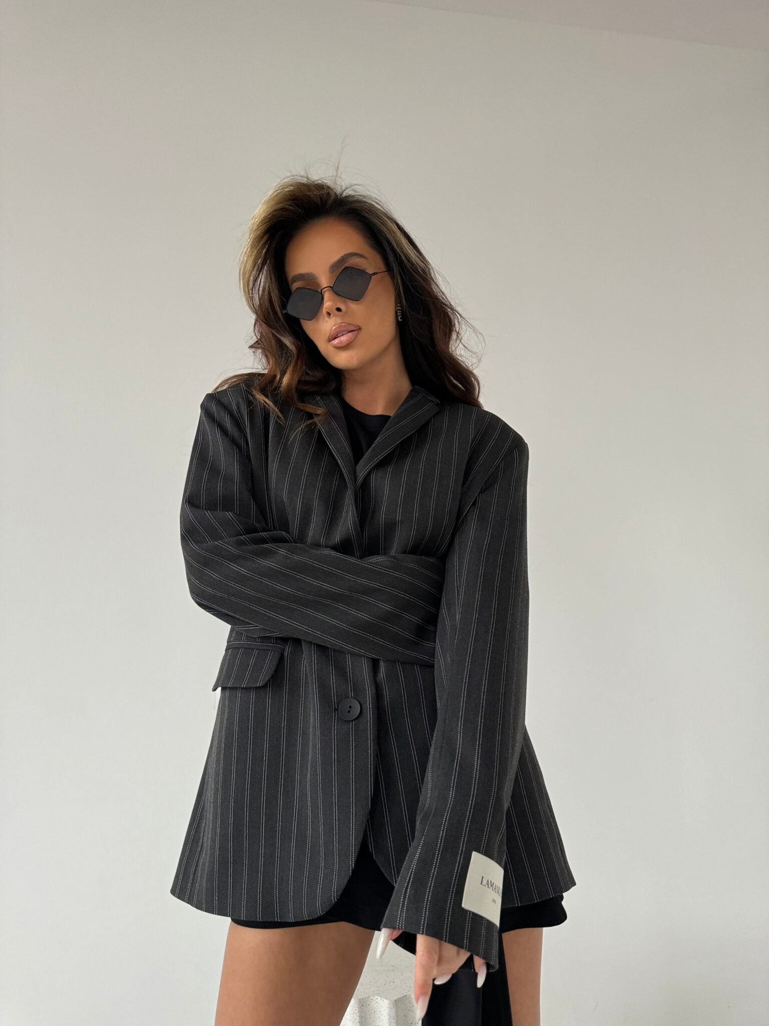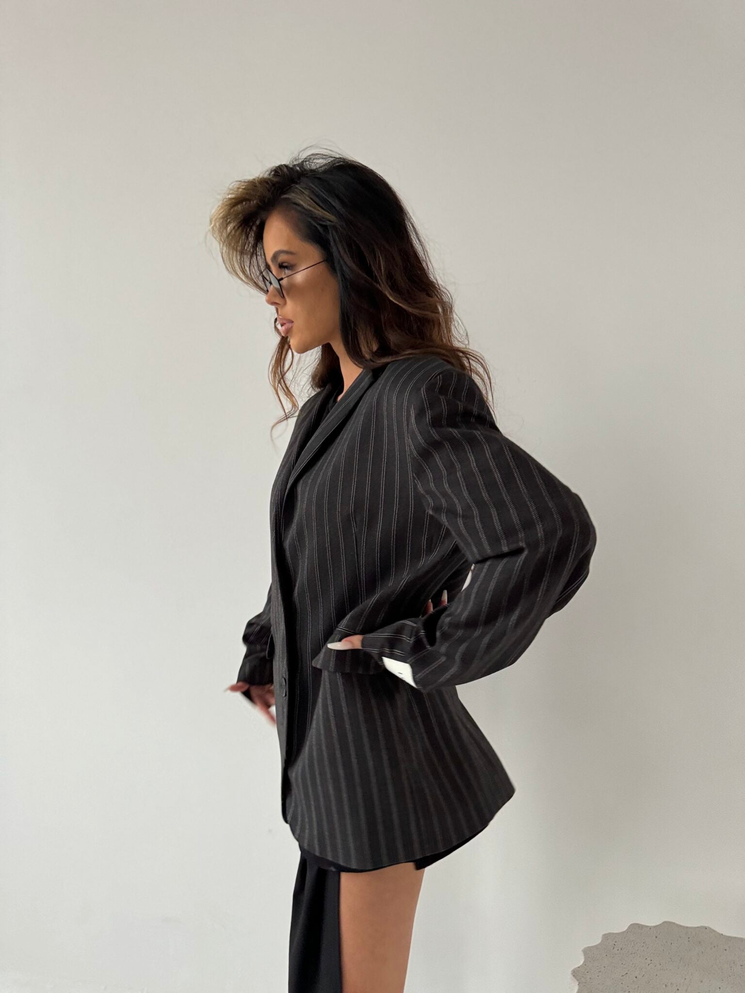 Das markante Streifenmuster verleiht der Jacke einen ausdrucksstarken Charakter und macht sie zu einem vielseitigen Begleiter – ideal für sowohl formelle Anlässe als auch entspannte Freizeitlooks. Ein besonderes Highlight ist der elegante Patch am Ärmel, der einen originellen Designer-Akzent setzt und den modernen, leicht lässigen Charme der Jacke unterstreicht.