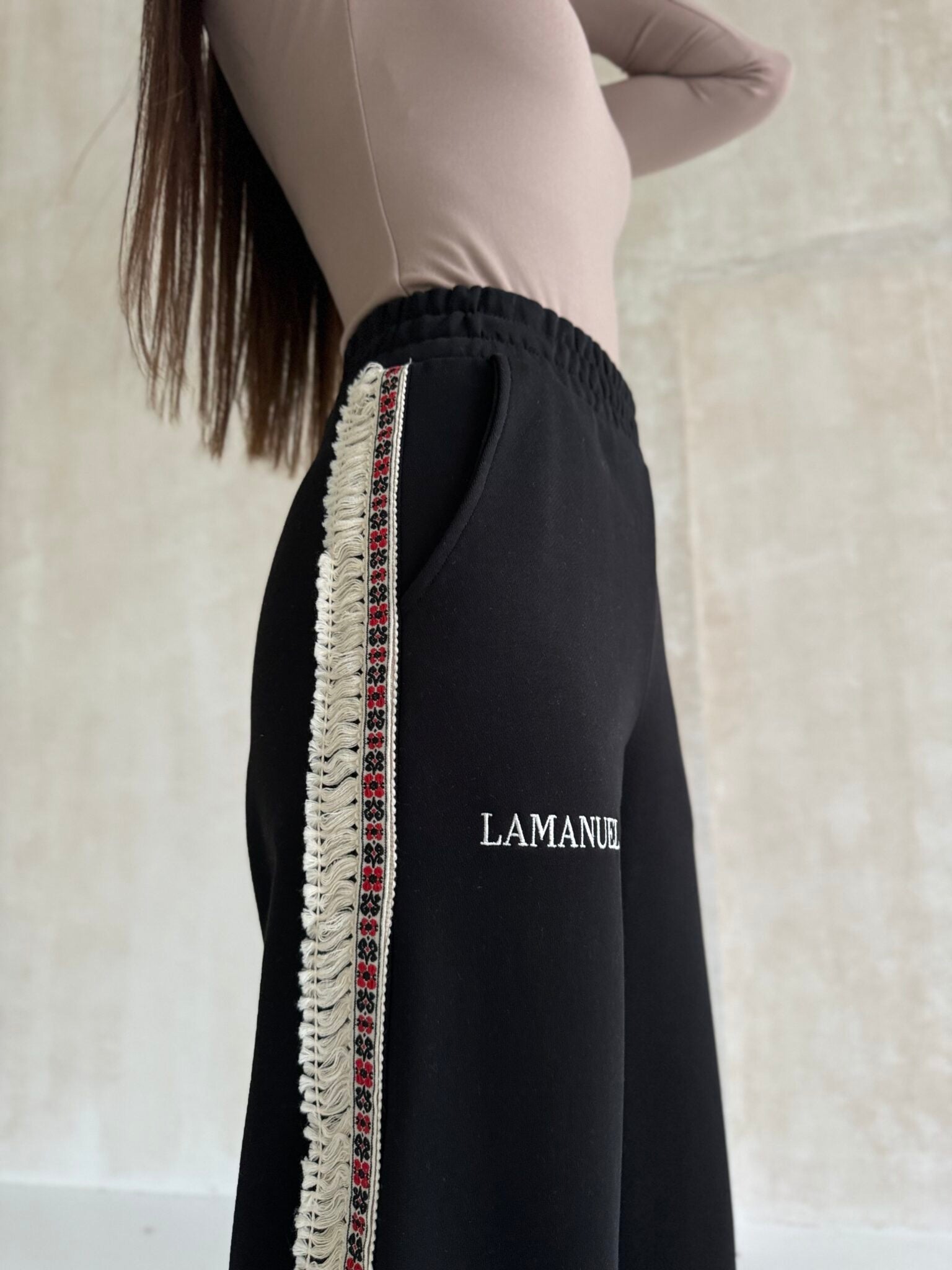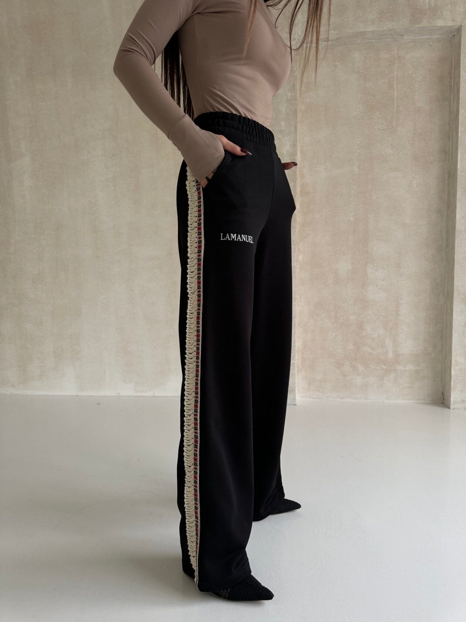 Die stilvollen Damenhosen von LAMANUEL ROOTS mit Streifen sind eine elegante und modische Option in der Garderobe jeder Frau, die Wert auf Komfort und Stil legt. Sie zeichnen sich durch einen schlichten Schnitt aus, der die Figur dezent betont, und die hinzugefügten Streifen verleihen ihnen einen sportlichen, aber gleichzeitig modernen Charakter. Die Streifen verlaufen an den Seiten der Hose, was dem Ganzen Dynamik verleiht und sie von klassischen Modellen unterscheidet.