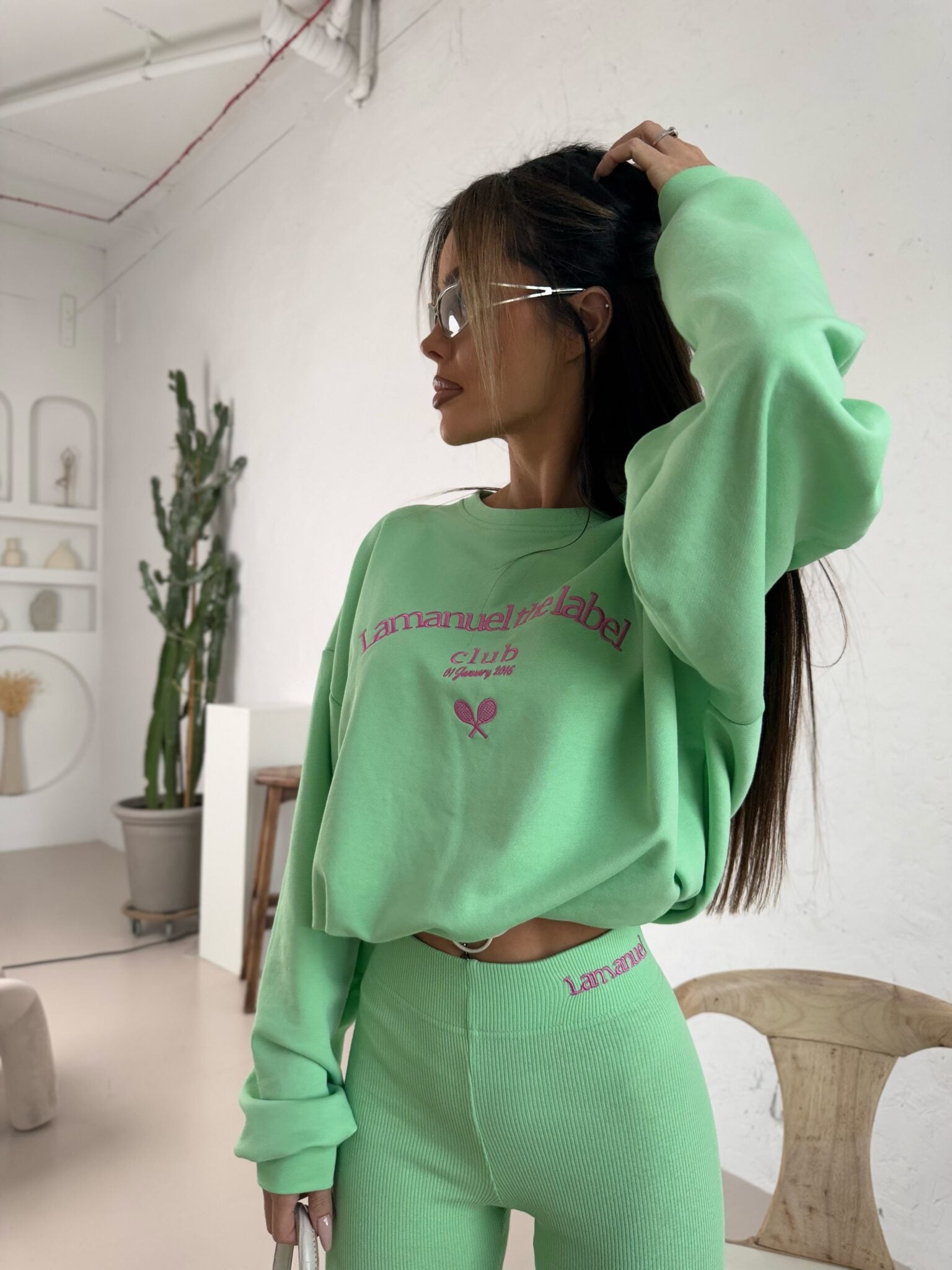 Das Sweatshirt hat einen lockeren Schnitt, der ihm einen lässigen Charakter verleiht, und die elastischen Leggings passen sich perfekt der Figur an. Die perfekte Wahl für jeden Tag, für Sport und Casual-Styling.