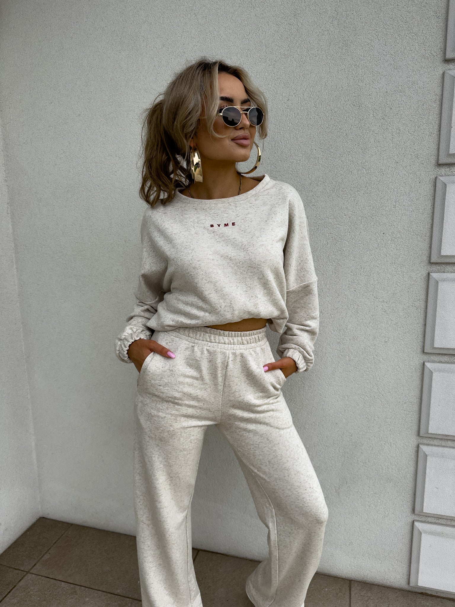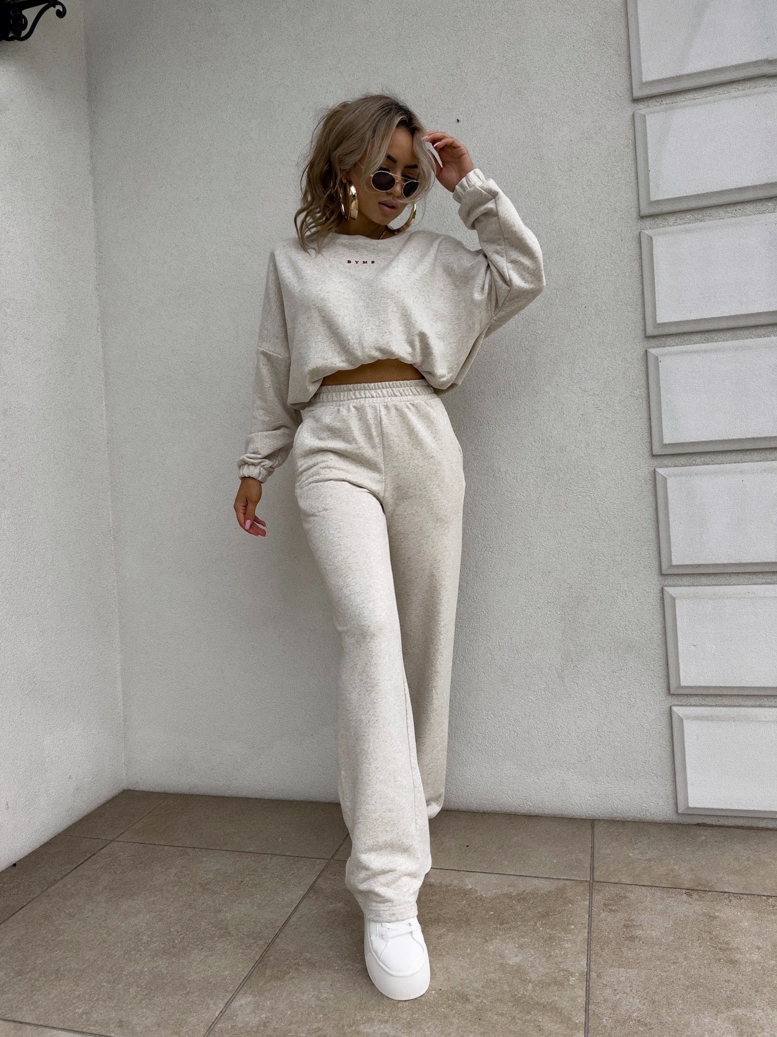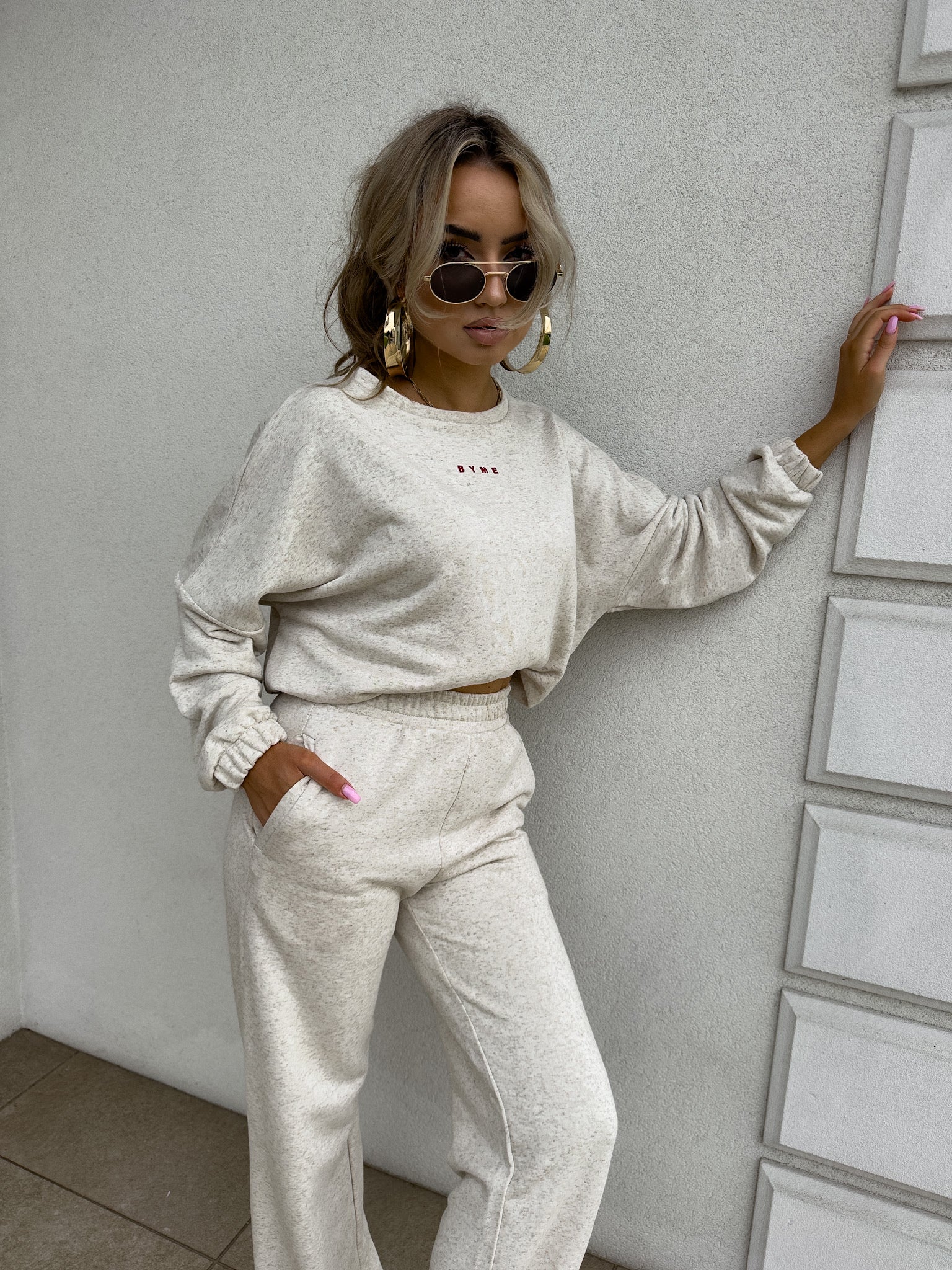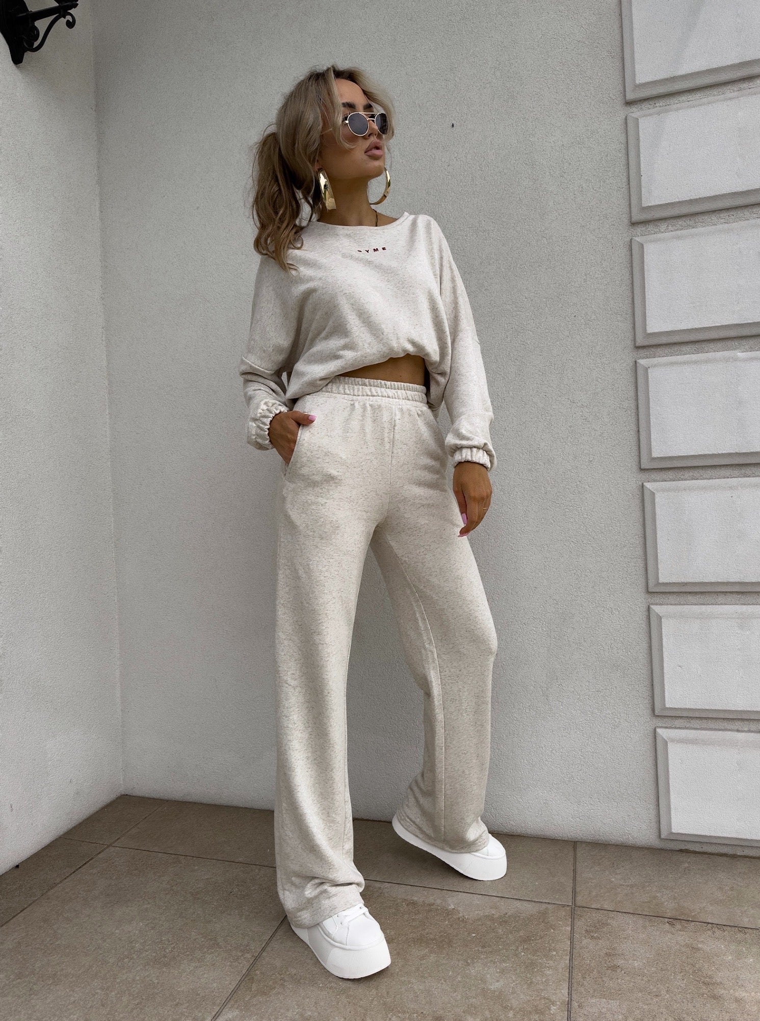 Dieser stylische Zweiteiler kombiniert Komfort mit modernem Design. Das Set besteht aus einem locker geschnittenen Sweatshirt mit elastischen Bündchen und einer passenden Jogginghose mit elastischem Bund und weitem Bein. Der weiche Stoff sorgt für ein angenehmes Tragegefühl, während der lässige Schnitt perfekt für den Alltag, entspannte Tage zu Hause oder einen trendigen Streetstyle-Look ist. Kombiniere das Set mit Sneakern für einen sportlich-eleganten Auftritt.