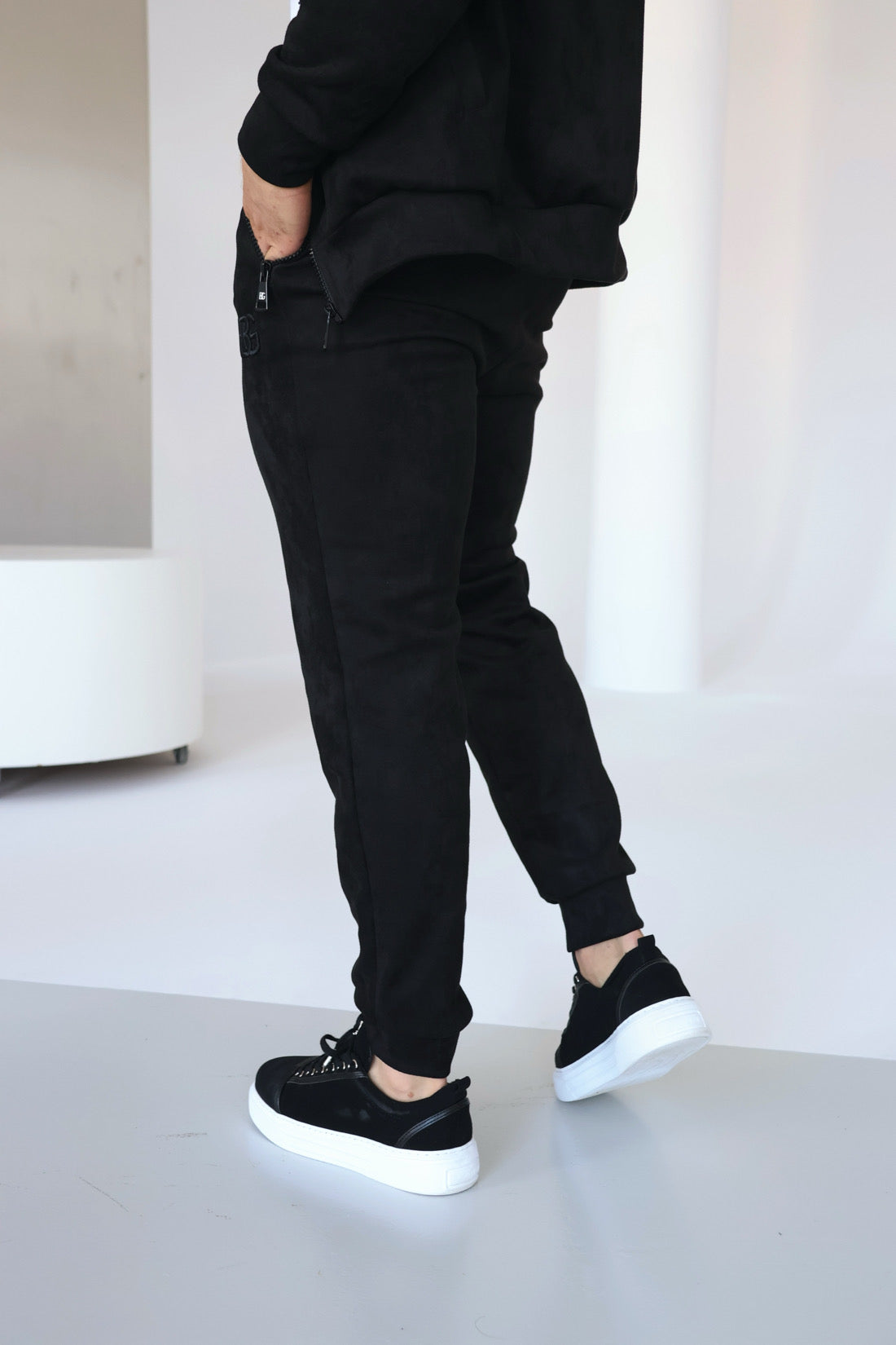 Produktbeschreibung: BG LOYALTY Wildleder-Trainingsanzug. Sweatshirt mit Reißverschluss, Taschen, Kapuze mit Kordelzug und Logo auf der Brust. Hose mit Reißverschlusstaschen und Kordelzug in der Taille. BG-Logo auf der Tasche.