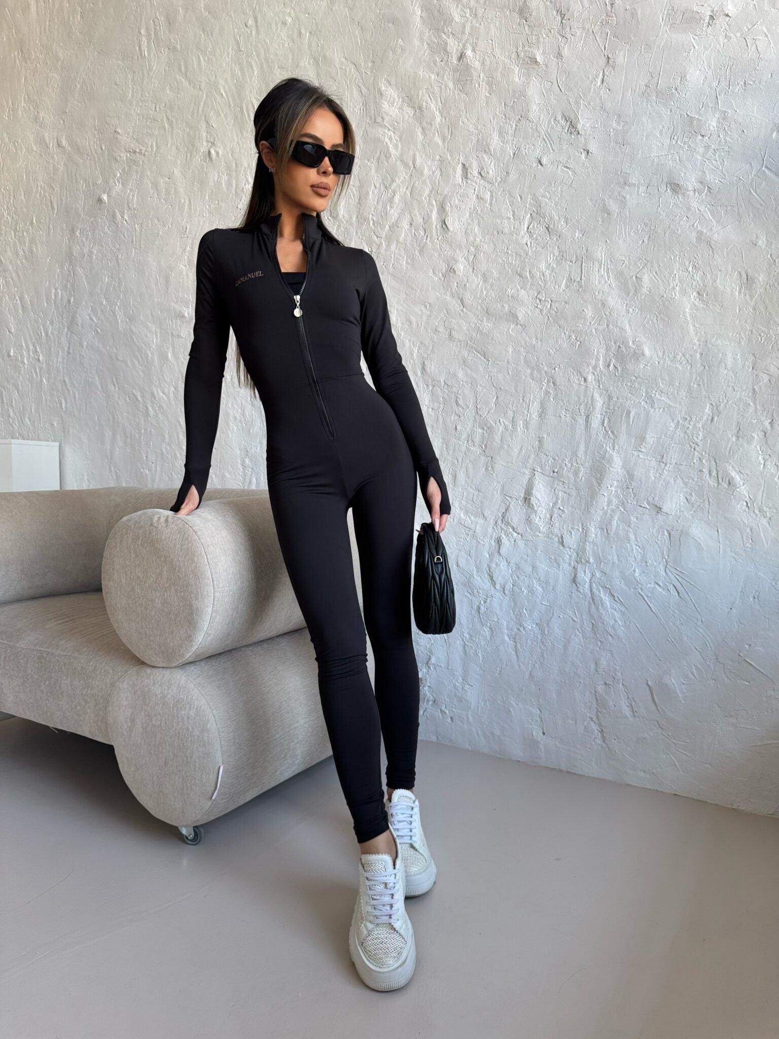 Ein stylischer und femininer Lycra-Overall, der durch seinen taillierten Schnitt die Figur betont. Aus flexiblem Material gefertigt, schmiegt es sich perfekt an den Körper an und sorgt für Komfort und Bewegungsfreiheit. Der lange Ärmel sorgt für Eleganz und der praktische Reißverschluss vorne erleichtert das Anziehen und ermöglicht die Anpassung der Ausschnitttiefe. Perfekt sowohl für den täglichen Gebrauch als auch für Abendausflüge. Fügen Sie einfach Ihre Lieblingsschuhe und -Accessoires hinzu, um einen modischen, auffälligen Look zu kreieren!