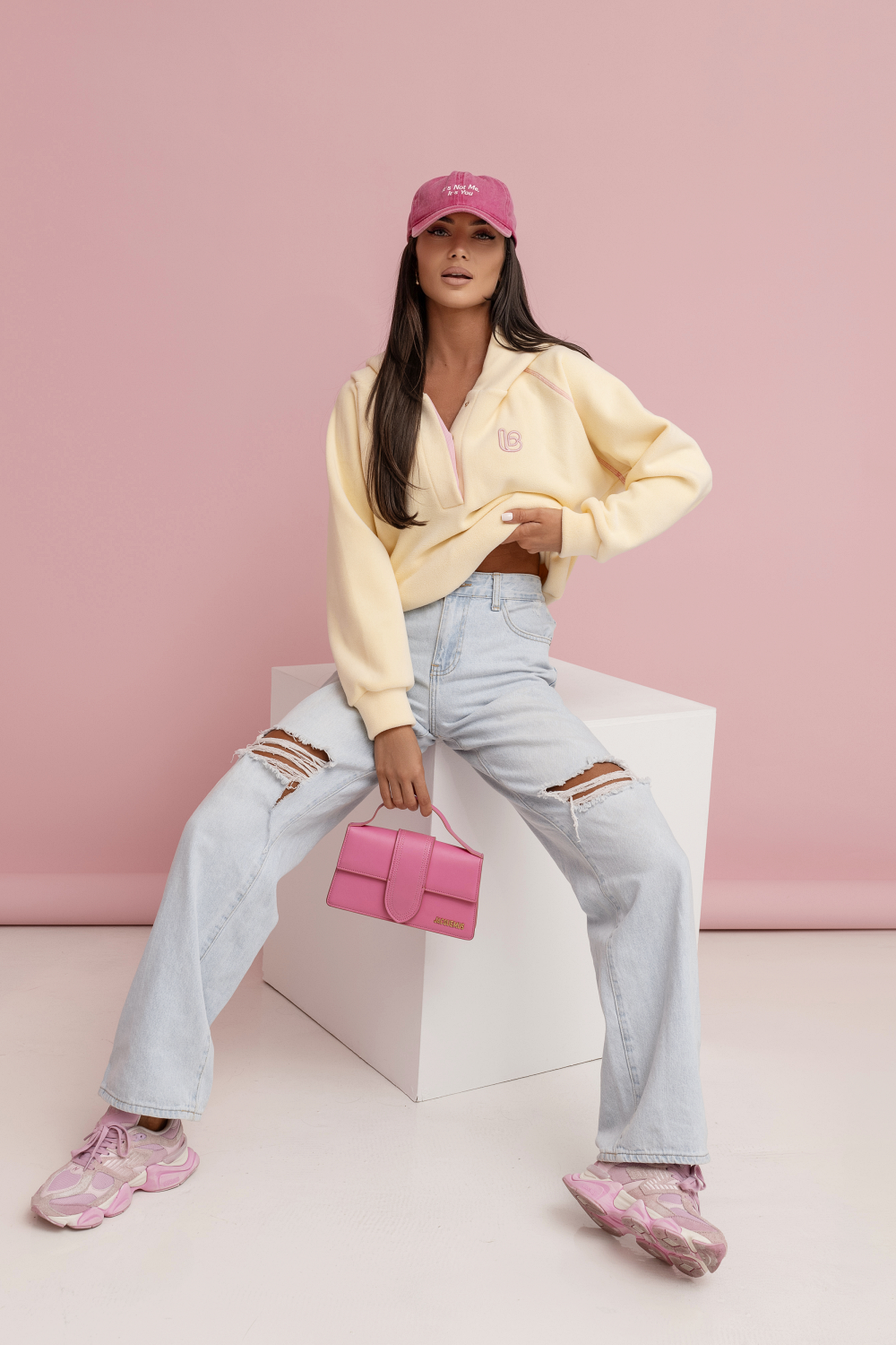 Das Sweatshirt besteht aus 95 % Baumwolleund 5 % Elastan und bietet dadurch nicht nur hohen Tragekomfort, sondern auch Langlebigkeit und Widerstandsfähigkeit. Das Material sorgt für optimale Belüftung, sodass Sie sich auch an wärmeren Tagen wohlfühlen. Der moderne Schnitt betont Ihre Figur perfekt, und die feinen Details verleihen ihm eine feminine Note.