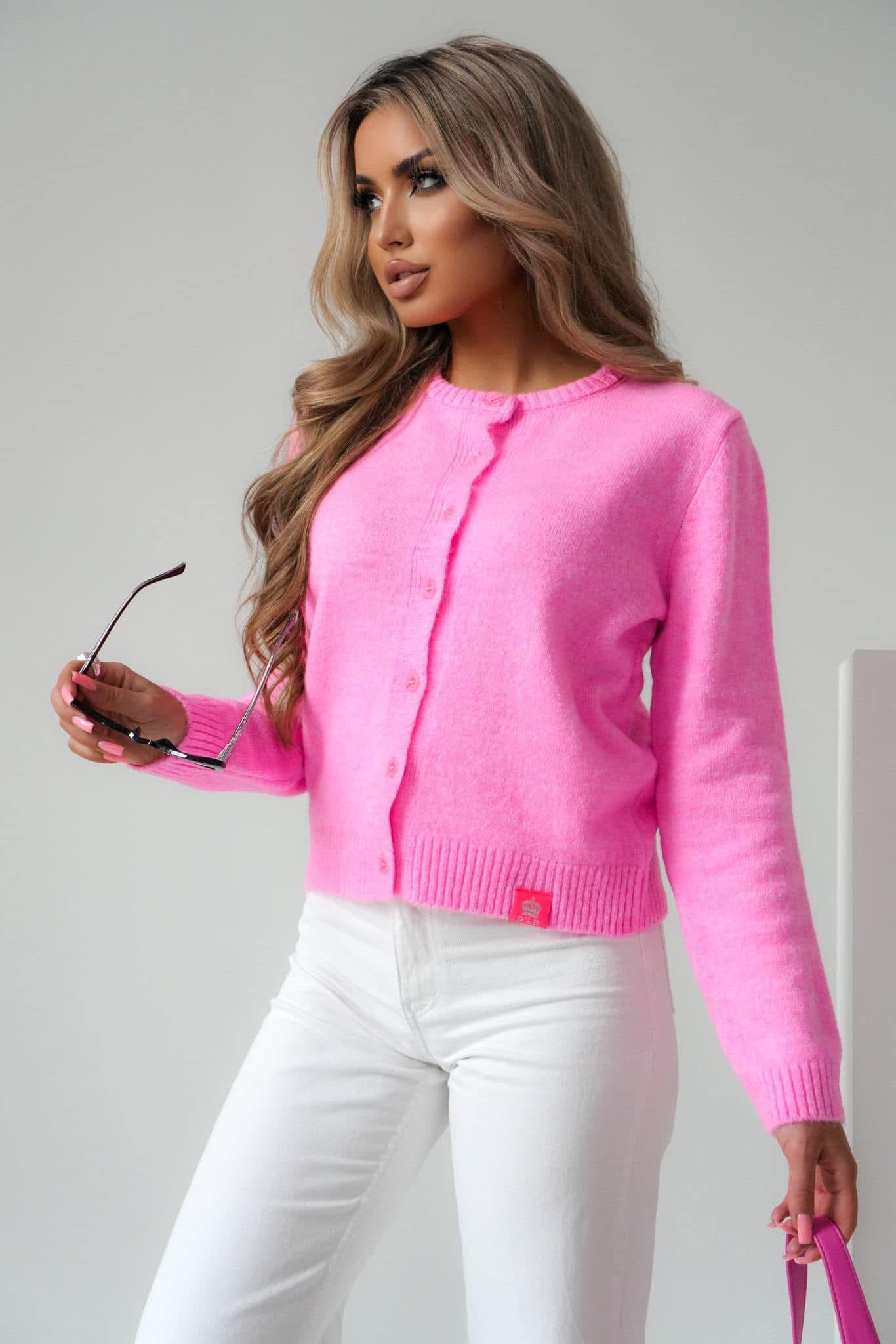 Geknöpfte Damenpullover Damenstrickjacke Rosa