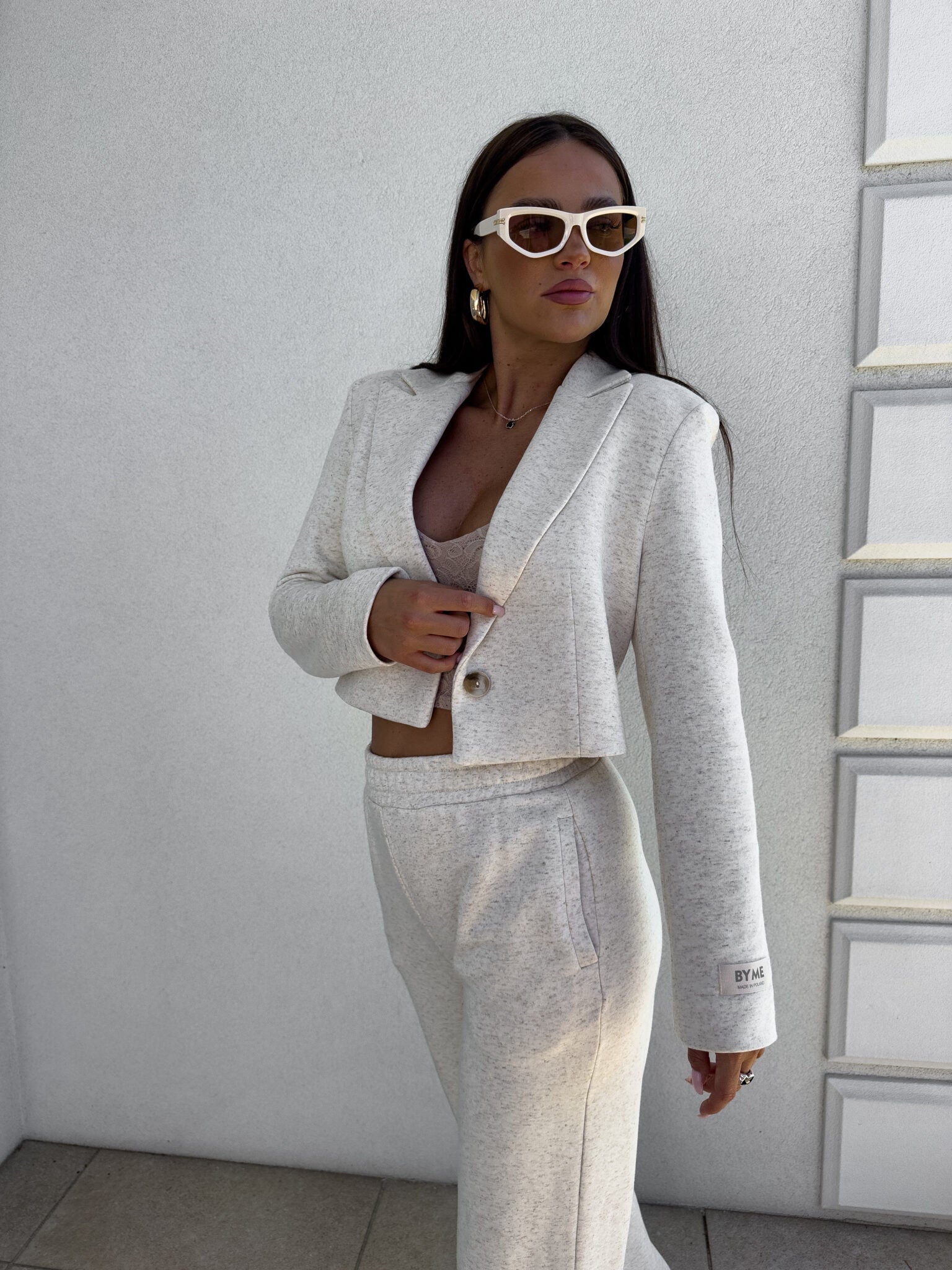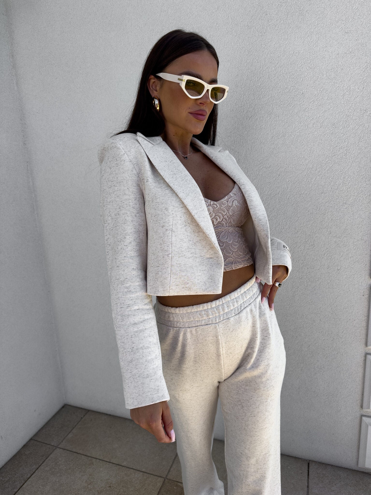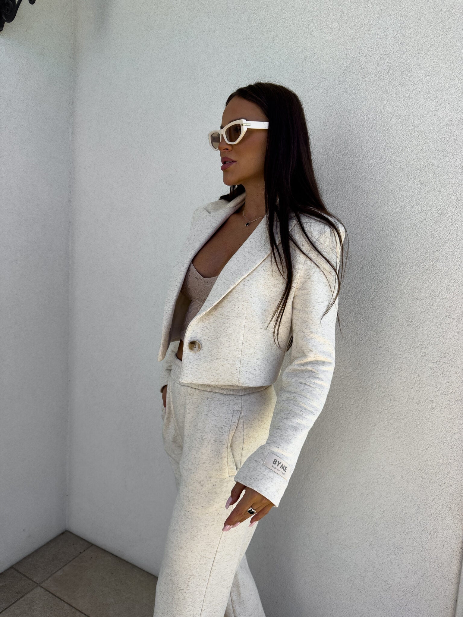 Eine kurze, taillierte Jacke mit vielseitigem Charakter, die sowohl zu sportlichen als auch zu eleganten Outfits passt. Kombiniere sie mit Jeans und High Heels, um einen eleganten Look zu kreieren, oder trage sie mit Jogginghosen und Sneakern, um modisch und gleichzeitig bequem gekleidet zu sein.