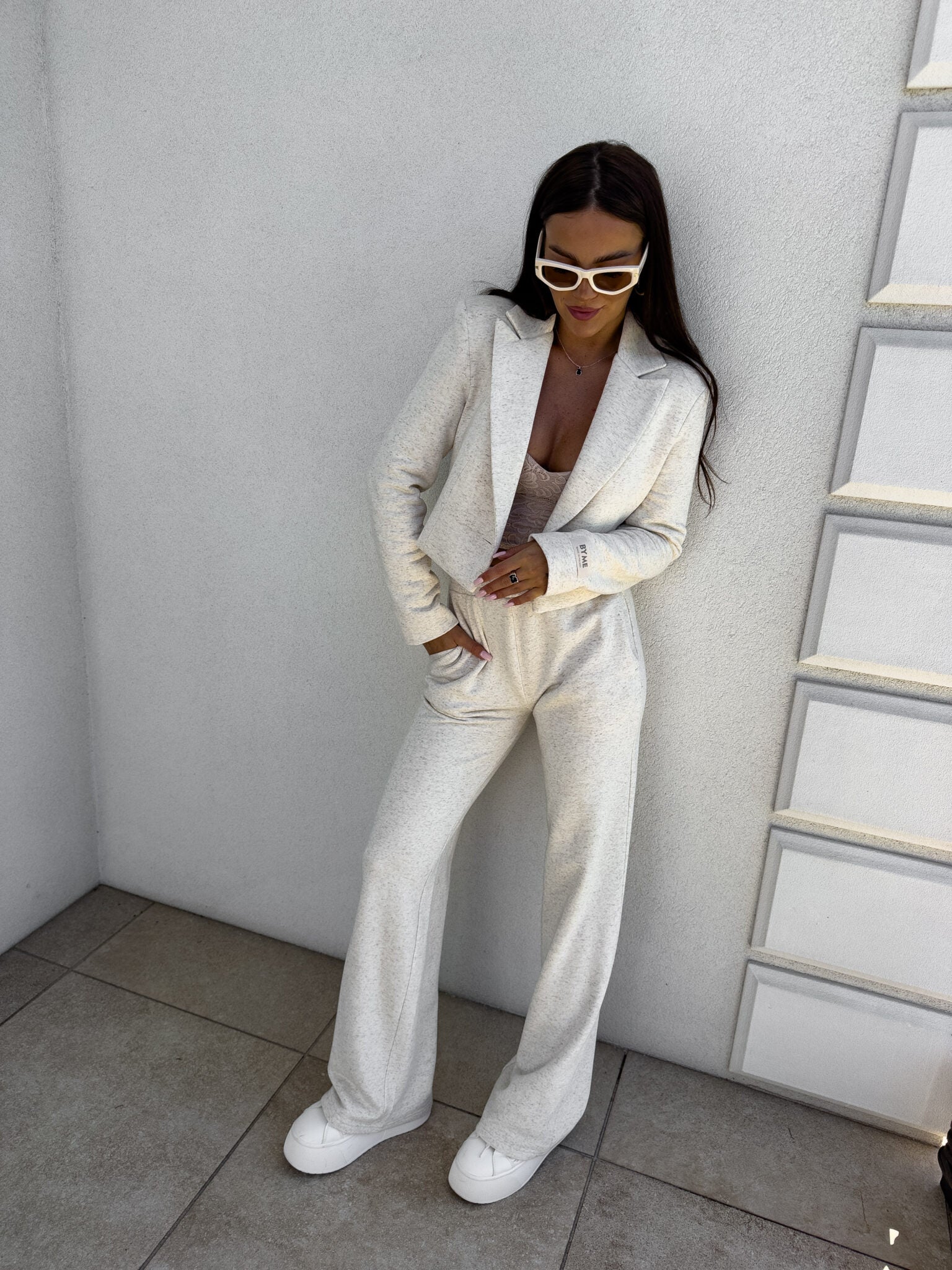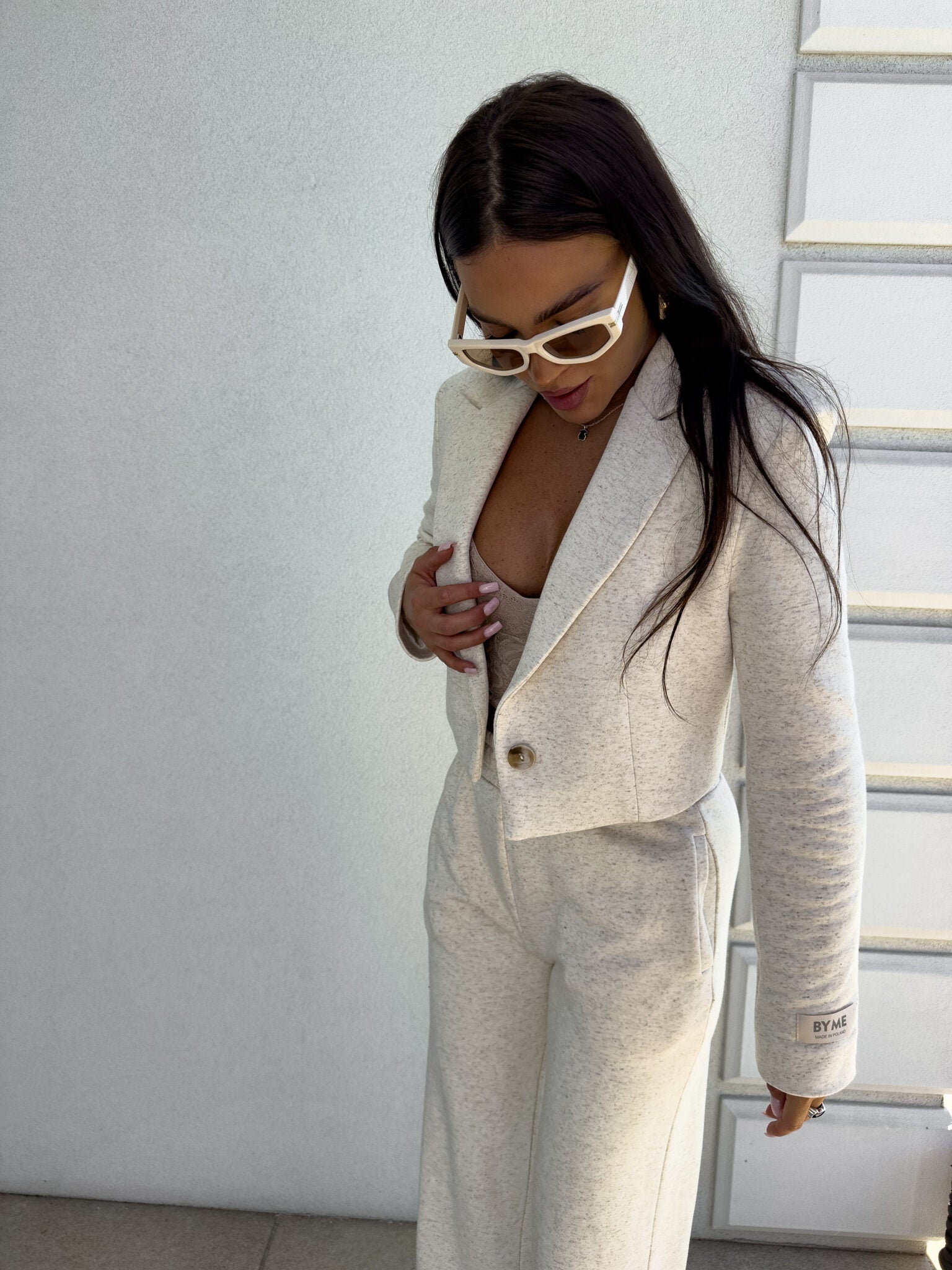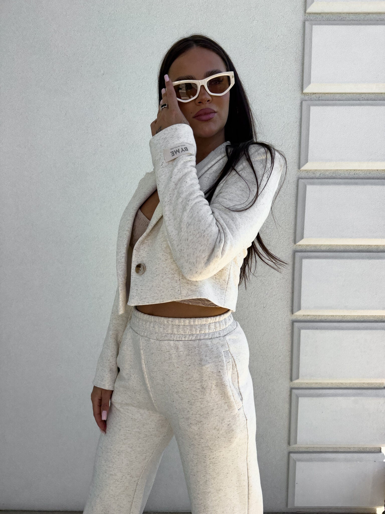 Eine kurze, taillierte Jacke mit vielseitigem Charakter, die sowohl zu sportlichen als auch zu eleganten Outfits passt. Kombiniere sie mit Jeans und High Heels, um einen eleganten Look zu kreieren, oder trage sie mit Jogginghosen und Sneakern, um modisch und gleichzeitig bequem gekleidet zu sein.