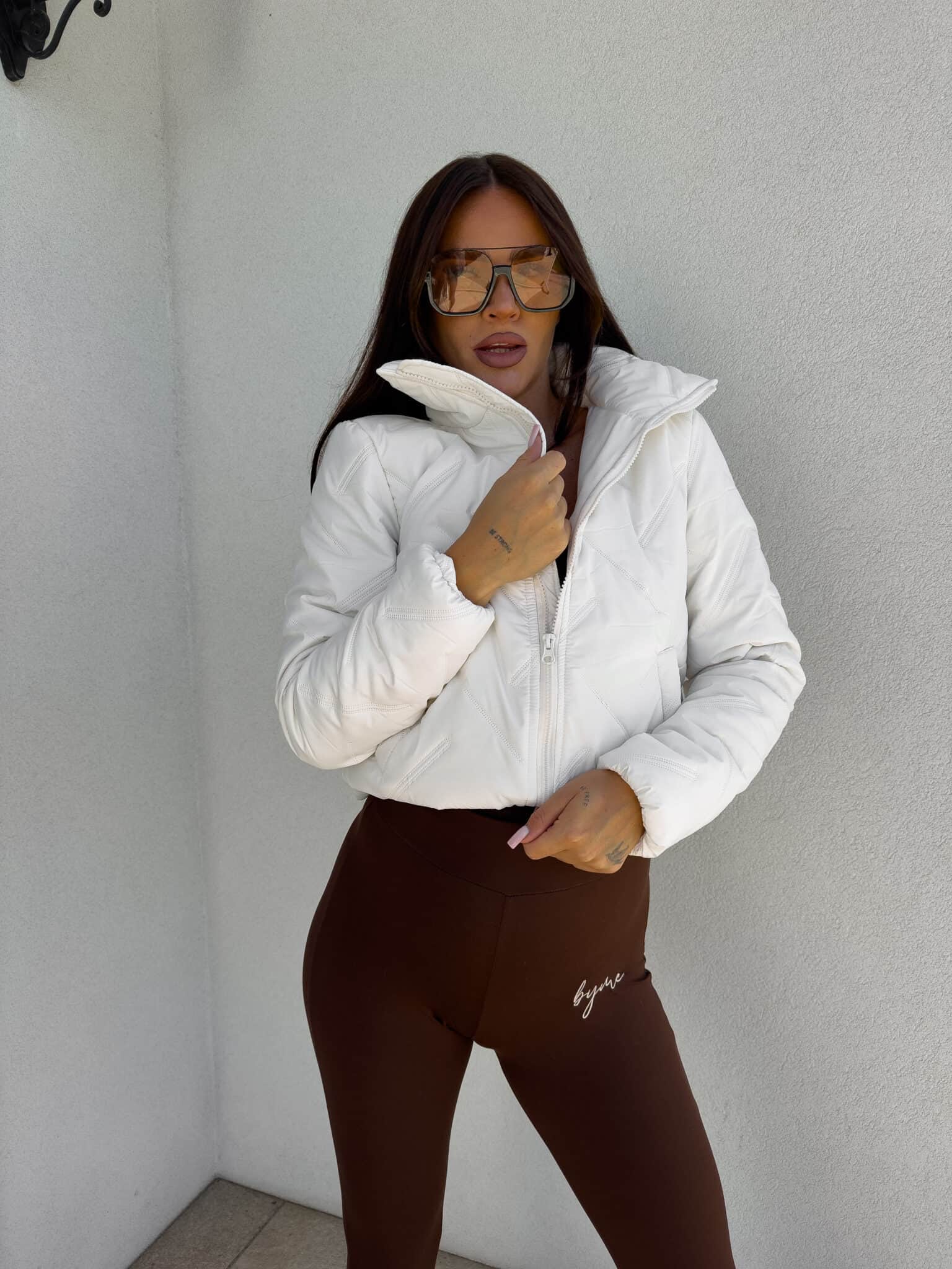 Mit einem Reißverschluss befestigt. Das Modell ist mit einem Stehkragen, Taschen und einem Puller an der Unterseite ausgestattet, mit dem Sie die Länge anpassen und sich an die Figur anpassen können.