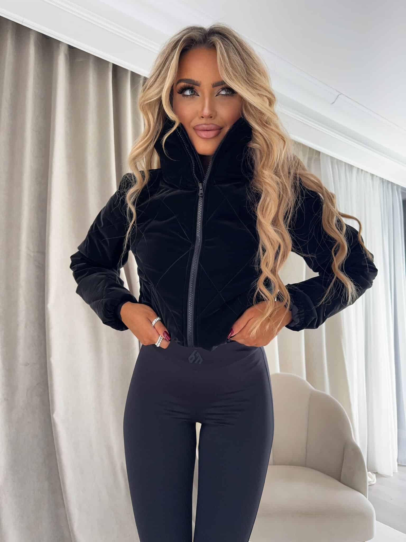Mit einem Reißverschluss befestigt. Das Modell ist mit einem Stehkragen, Taschen und einem Kordelzug an der Unterseite ausgestattet, mit dem Sie die Länge anpassen und die Figur anpassen können. Melden Sie sich auf der Rückseite an.