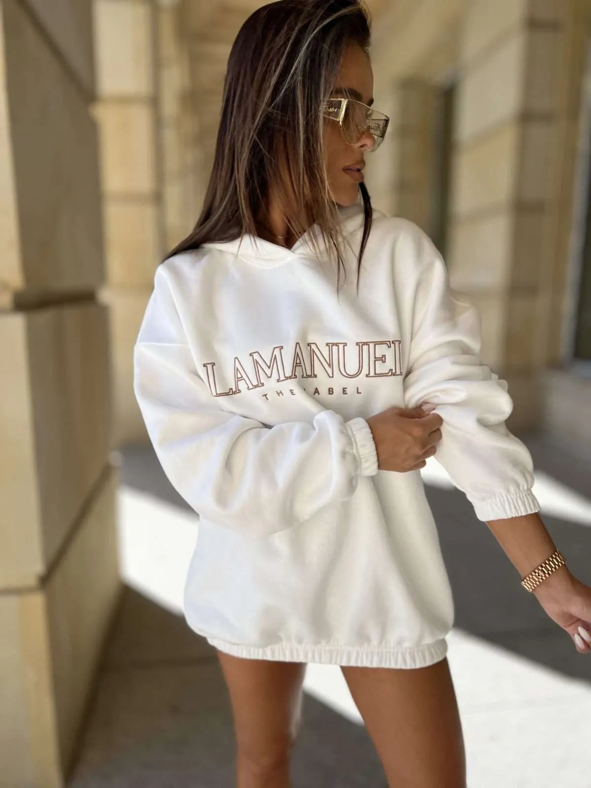 Durch seine längere Form, kann es als Kleid getragen werden und bietet gleichzeitig den Komfort einem Sweatshirt.