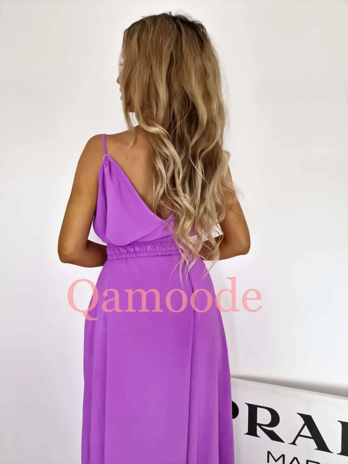 Sommerliches Langes Kleid aus Viskose in Lila Farbe.