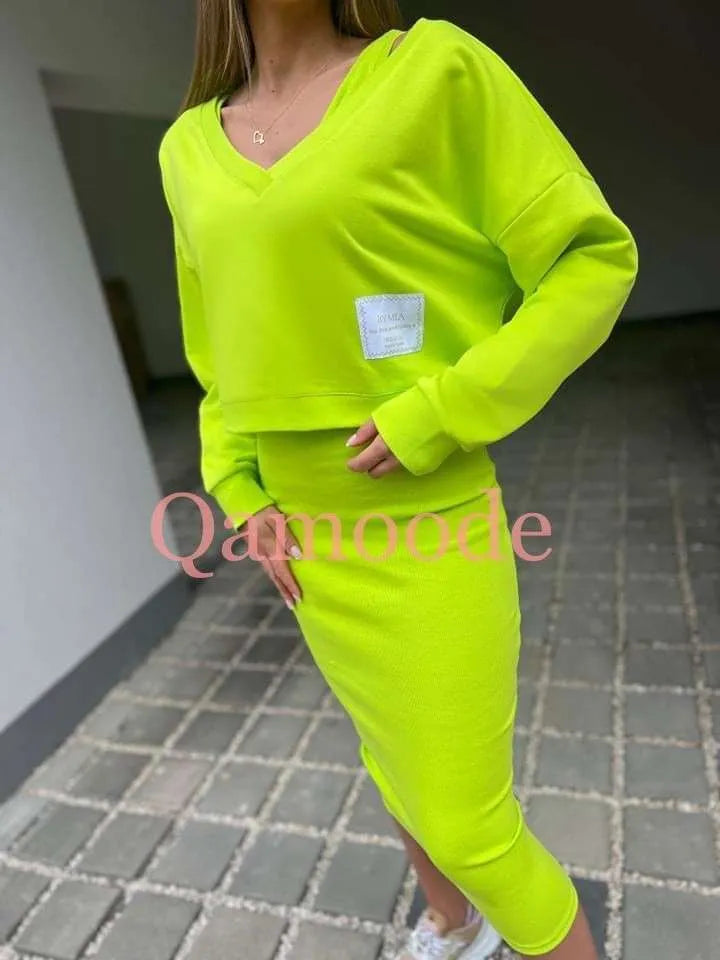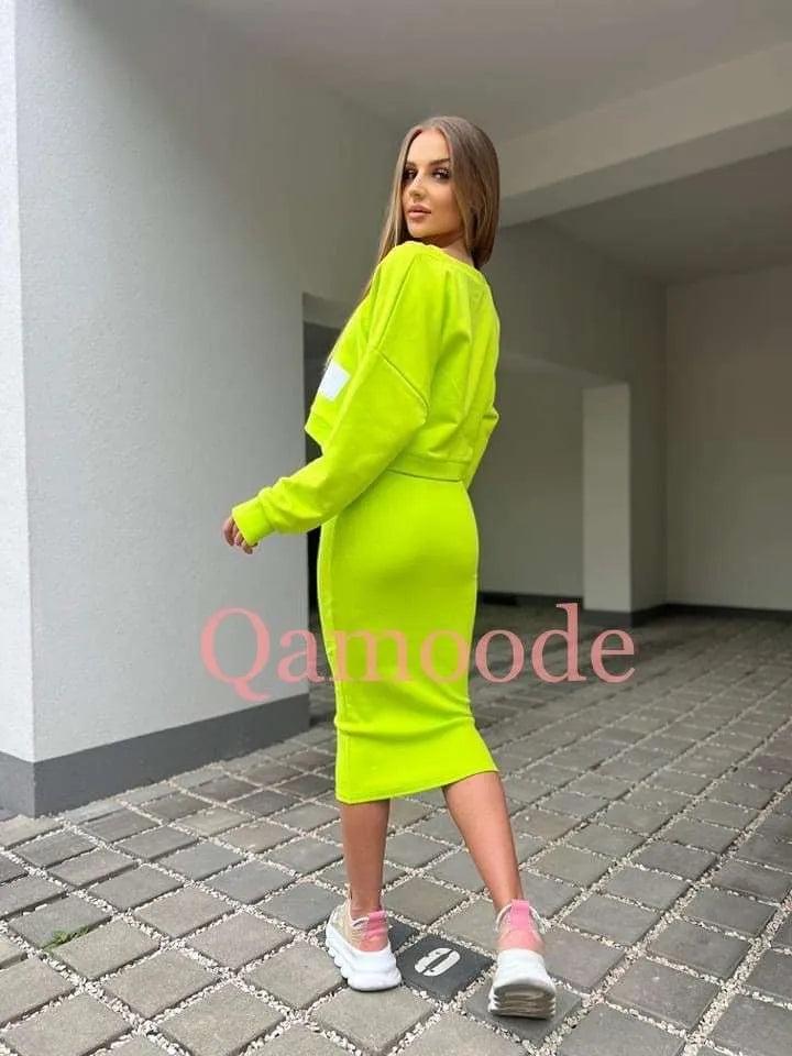 Wunderschöne Set, besteht aus Kleid und oversized Pullover in Neon Grün Farbe.