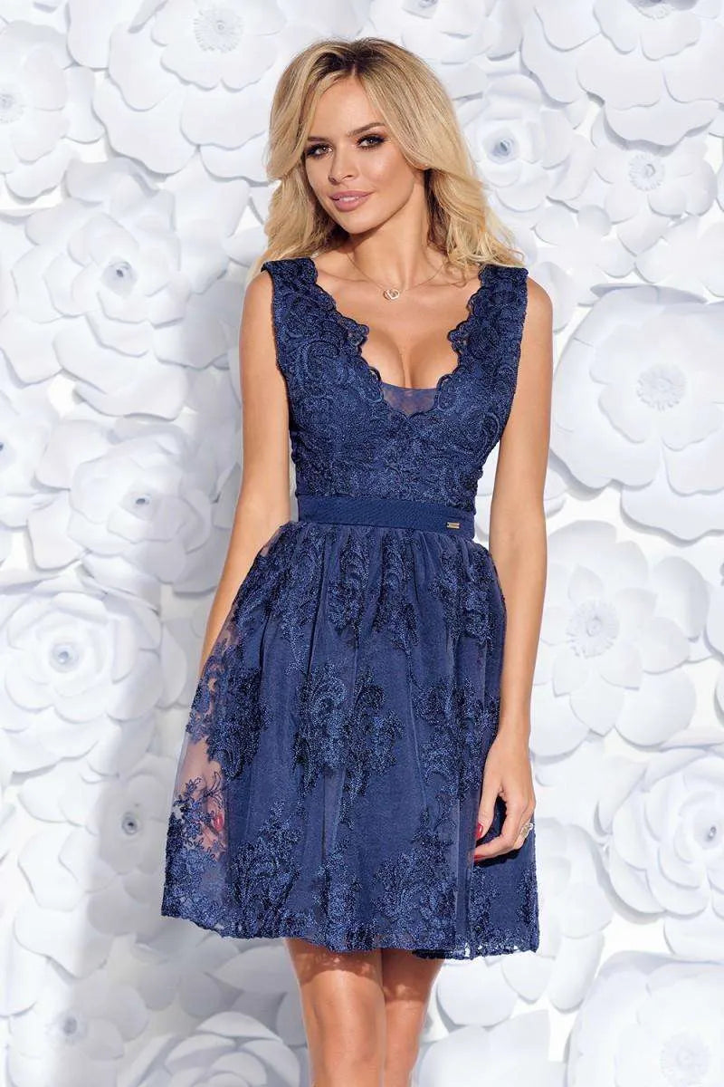 Kurze Abendkleid mit Spitze Dunkelblau Größe 40