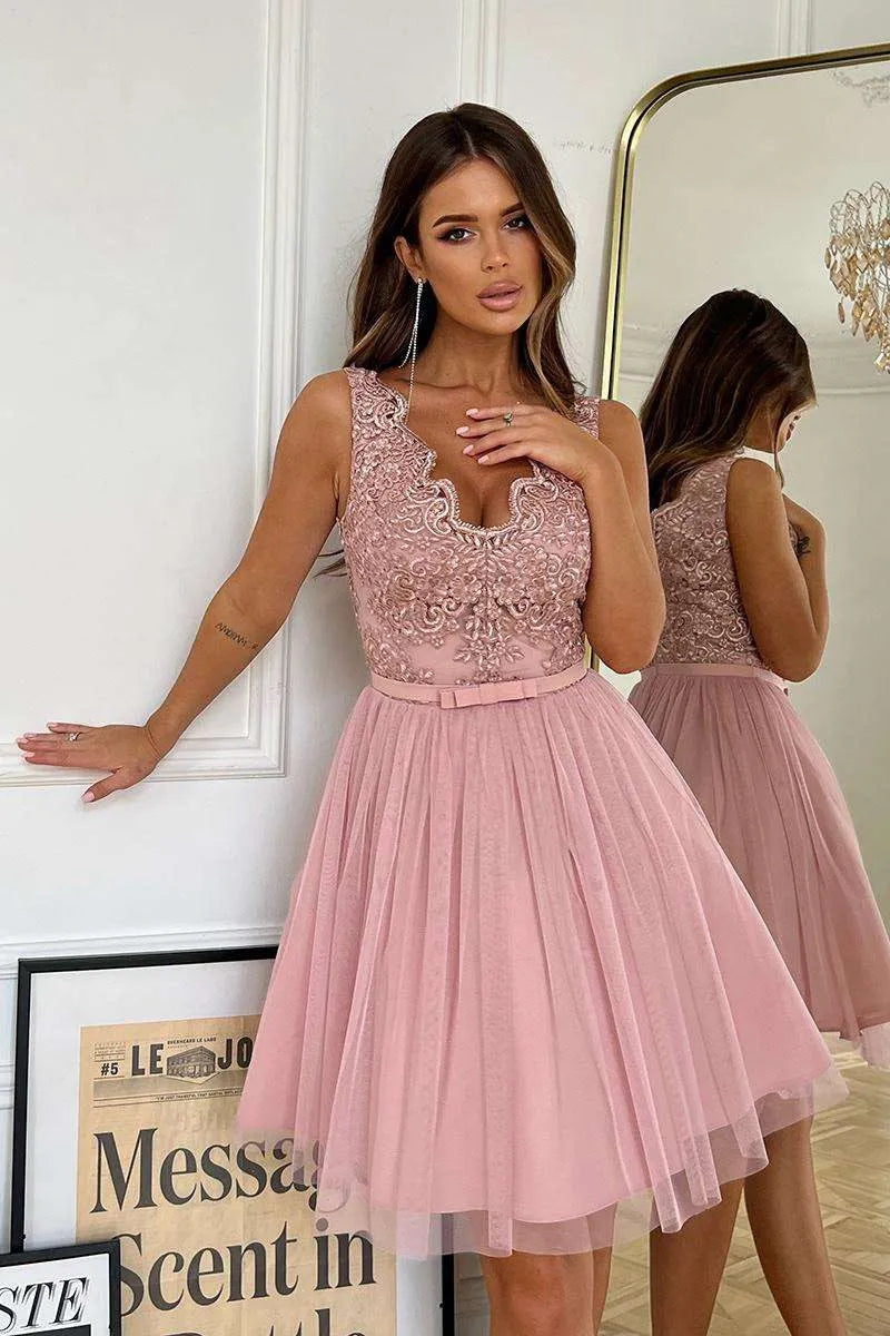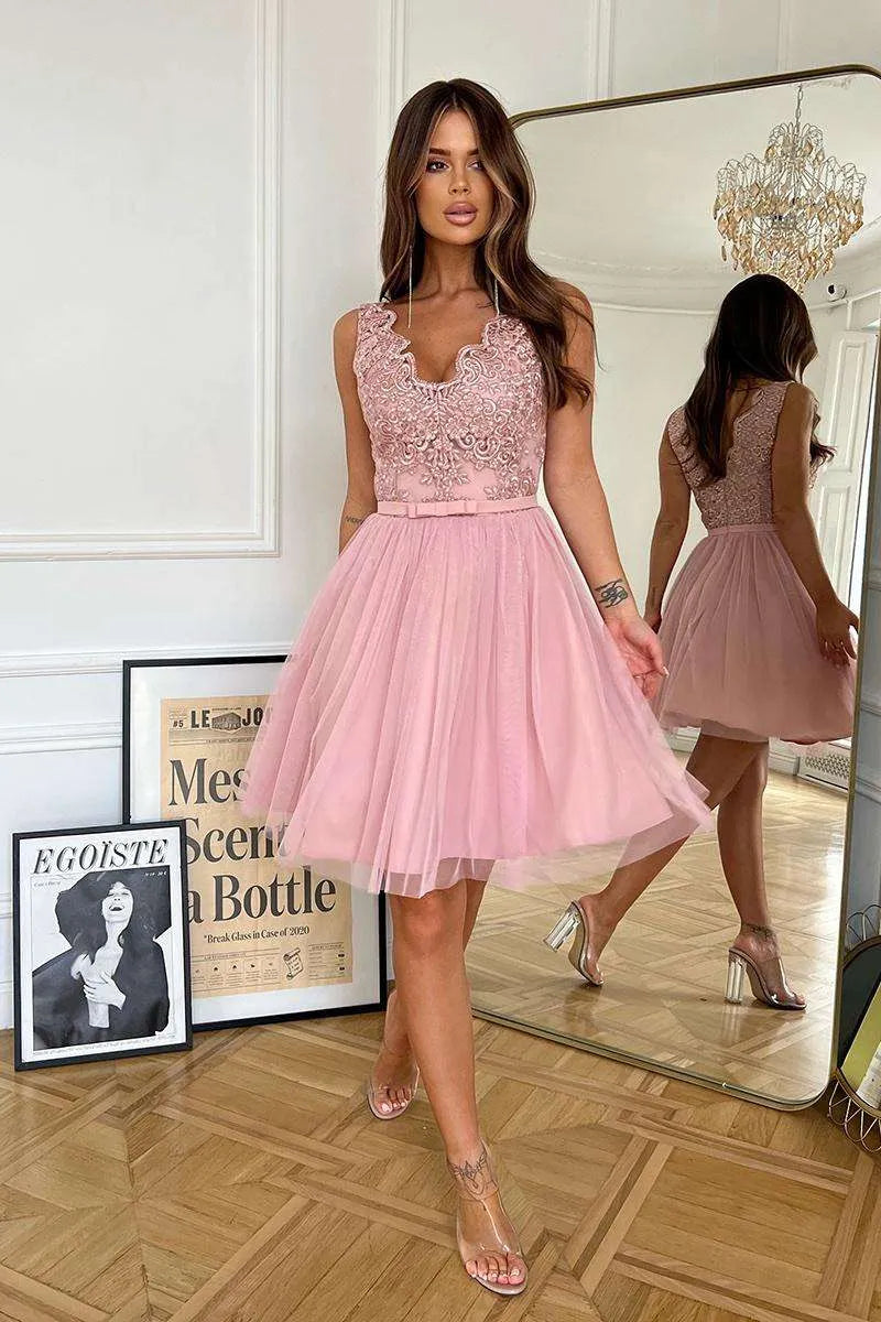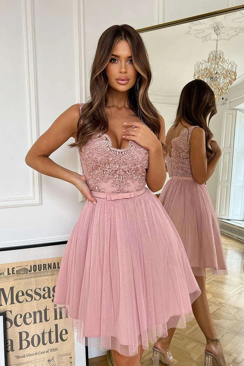 Kleid mit Spitze und Tüllrock Rosa Größe 38