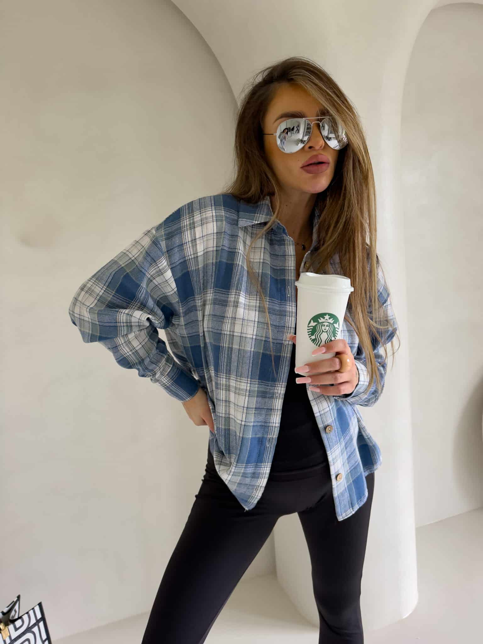 Das PLAID-Shirt zeichnet sich durch einen lockeren Schnitt und einen verstellbaren Knopfverschluss aus.