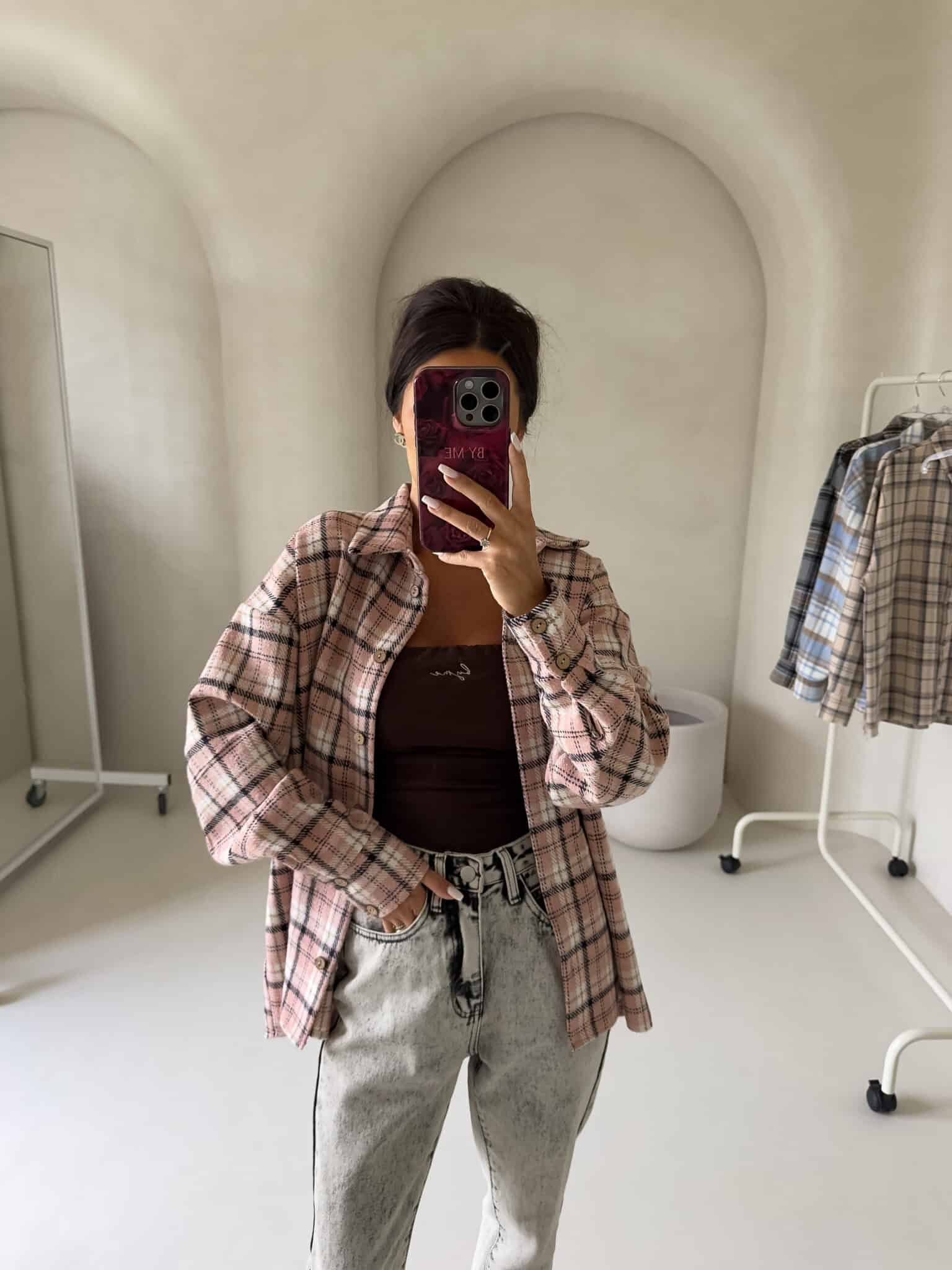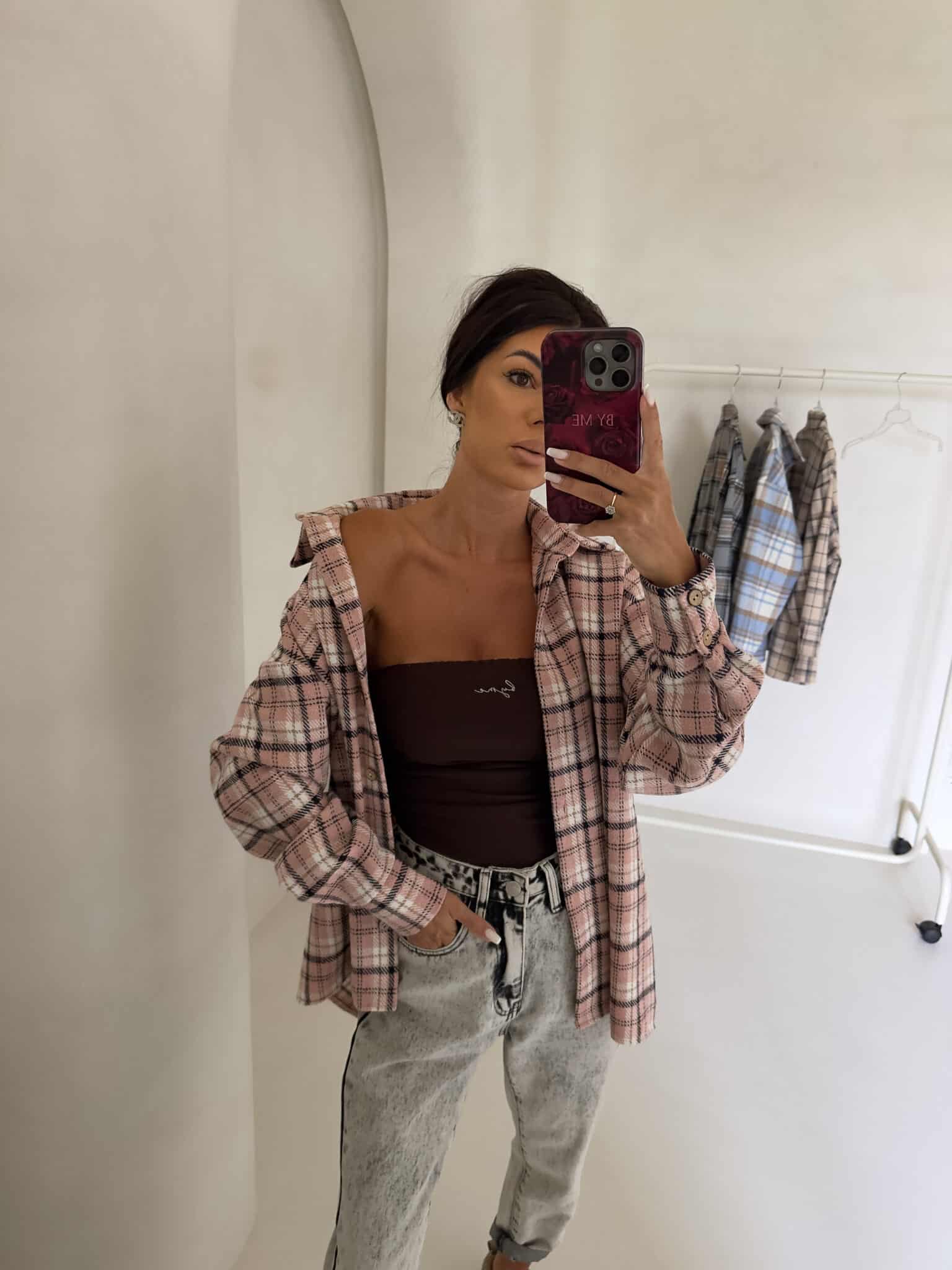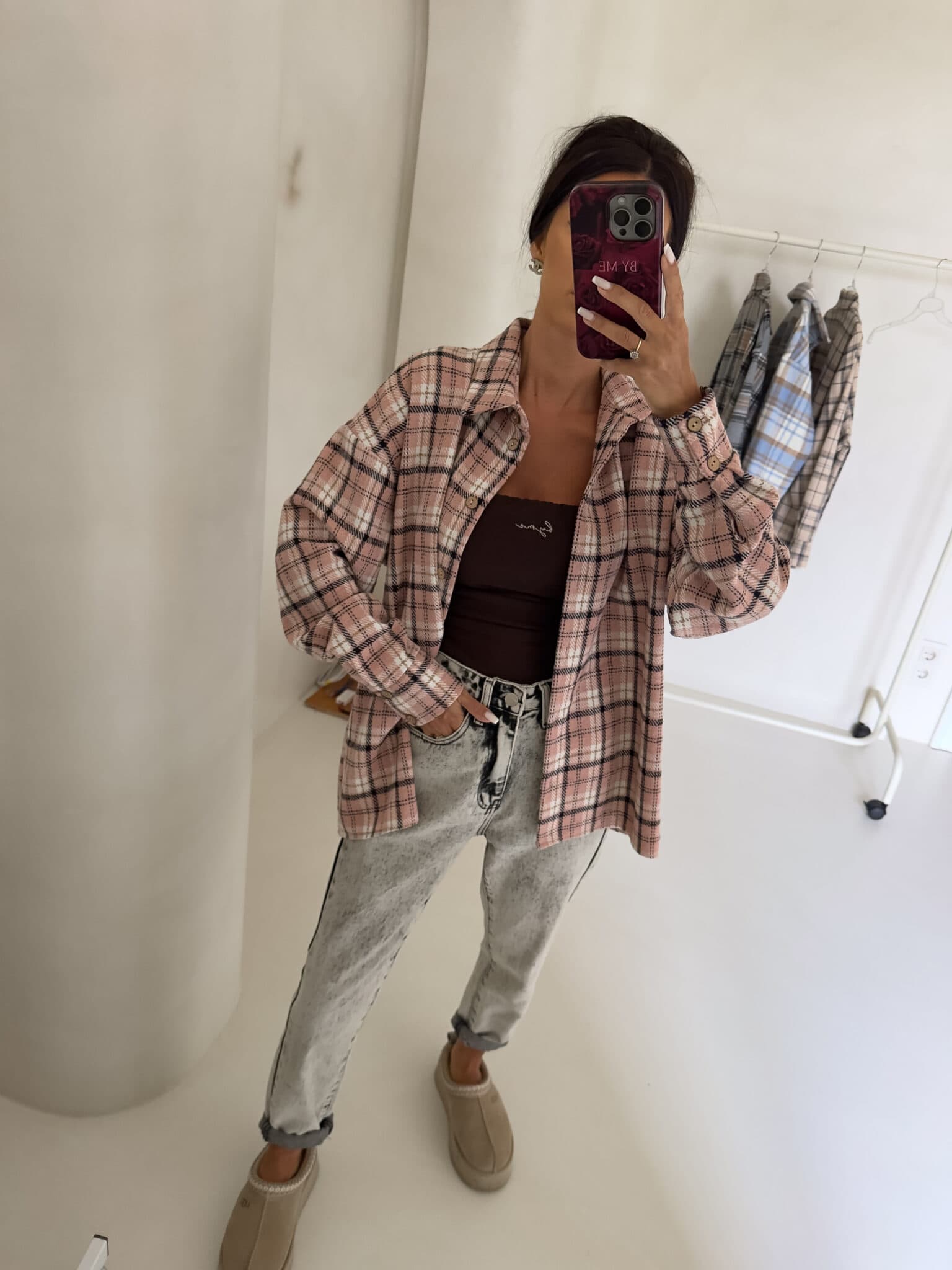 Das PLAID-Shirt zeichnet sich durch einen lockeren Schnitt und einen verstellbaren Knopfverschluss aus.