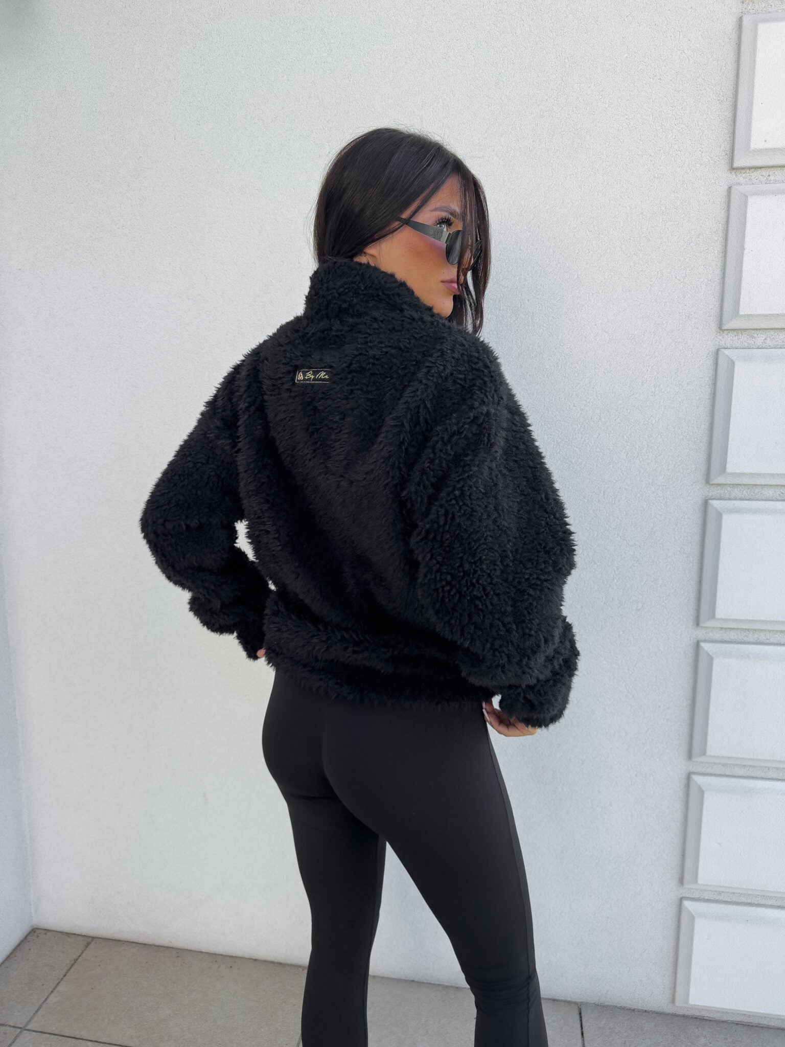 Stilvolle und kuschelige kurze Jacke aus extrem weichem, flauschigem pelzartigem Material. Mit einem Reißverschluss befestigt, passt es sich perfekt der Figur an und sorgt für Tragekomfort. Der klassische, leicht stehende Kragen, ebenfalls mit Fell versehen, verleiht Eleganz und schützt vor Kälte.