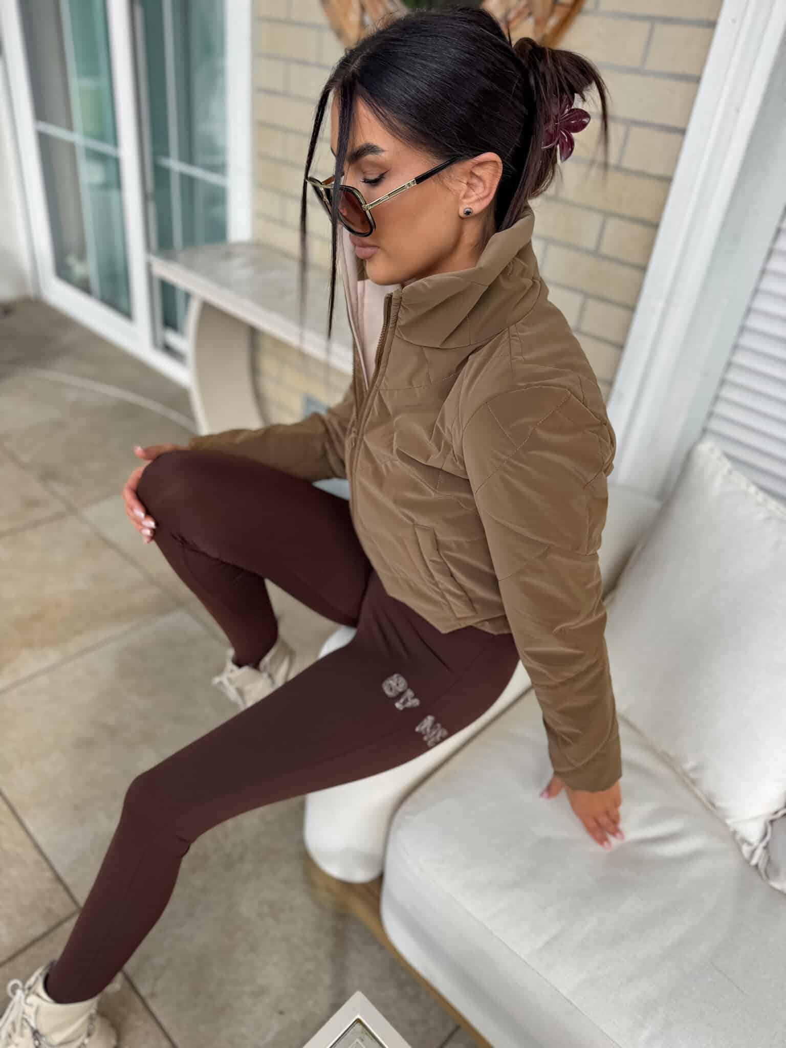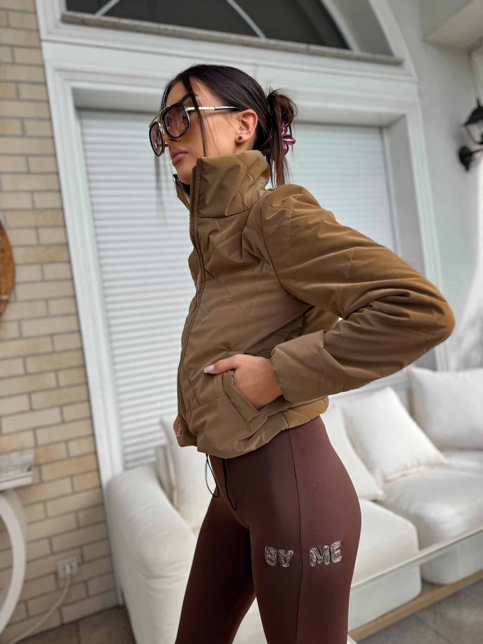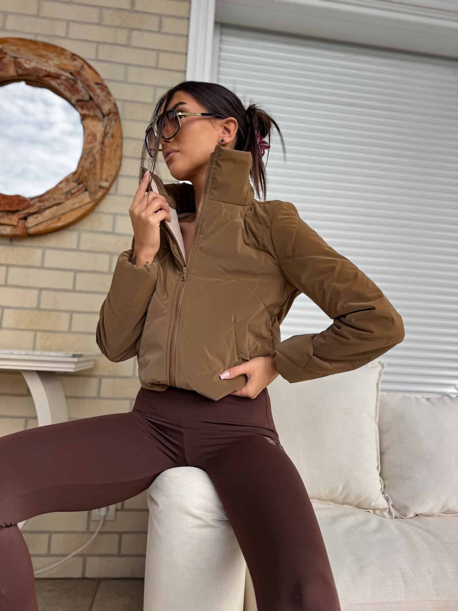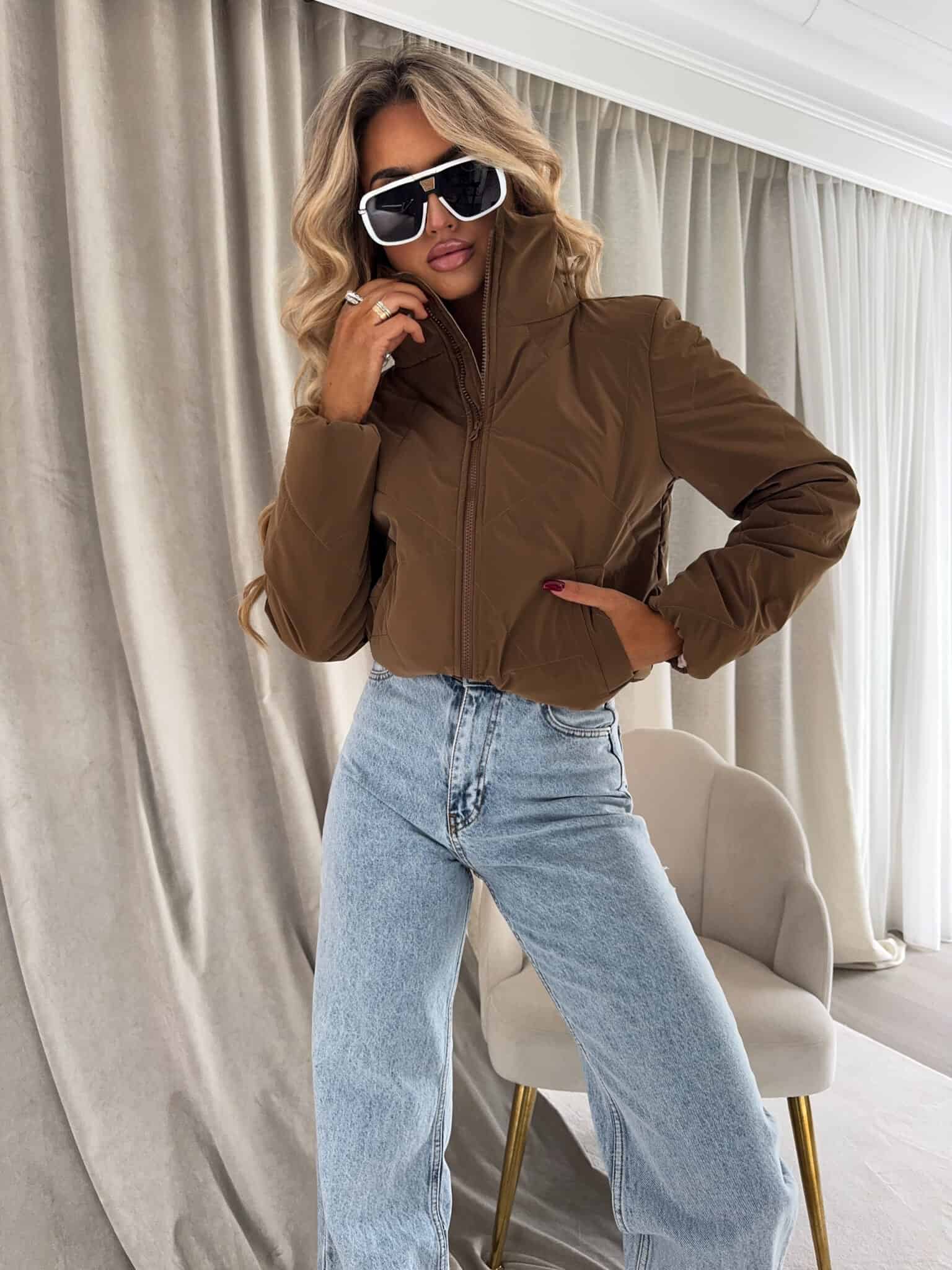 Mit einem Reißverschluss befestigt. Das Modell ist mit einem Stehkragen, Taschen und einem Kordelzug an der Unterseite ausgestattet, mit dem Sie die Länge anpassen und die Figur anpassen können. Melden Sie sich auf der Rückseite an.