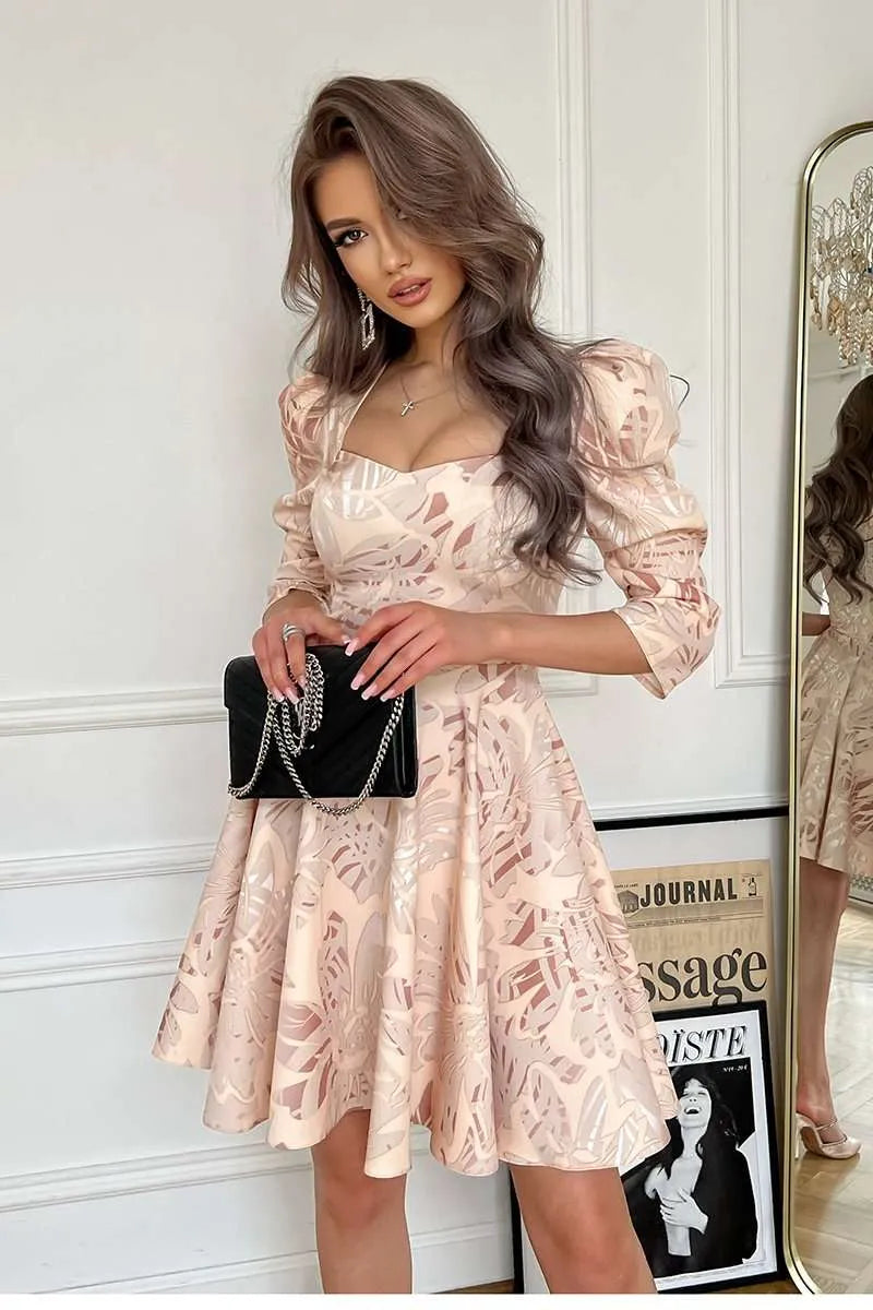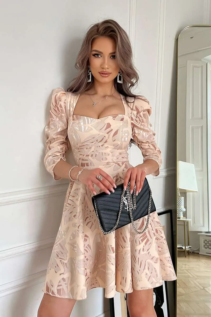 Kurzes Kleid mit Puffärmeln Gold