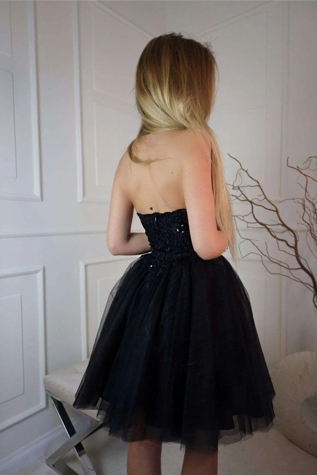 Kurzes Neckholder- Kleid mit Glitzer am Oberteil und Tüll-Rock in Schwarz.