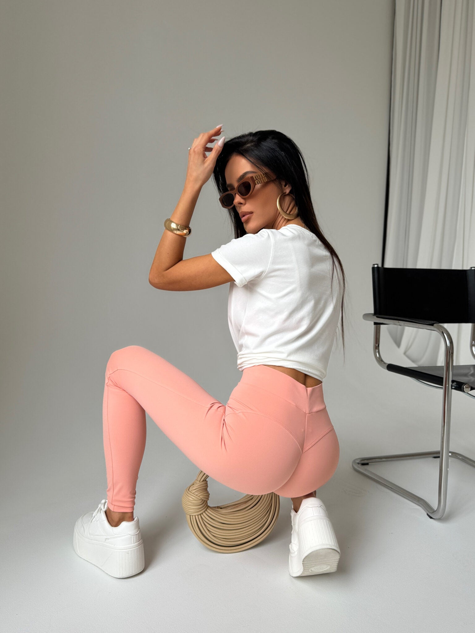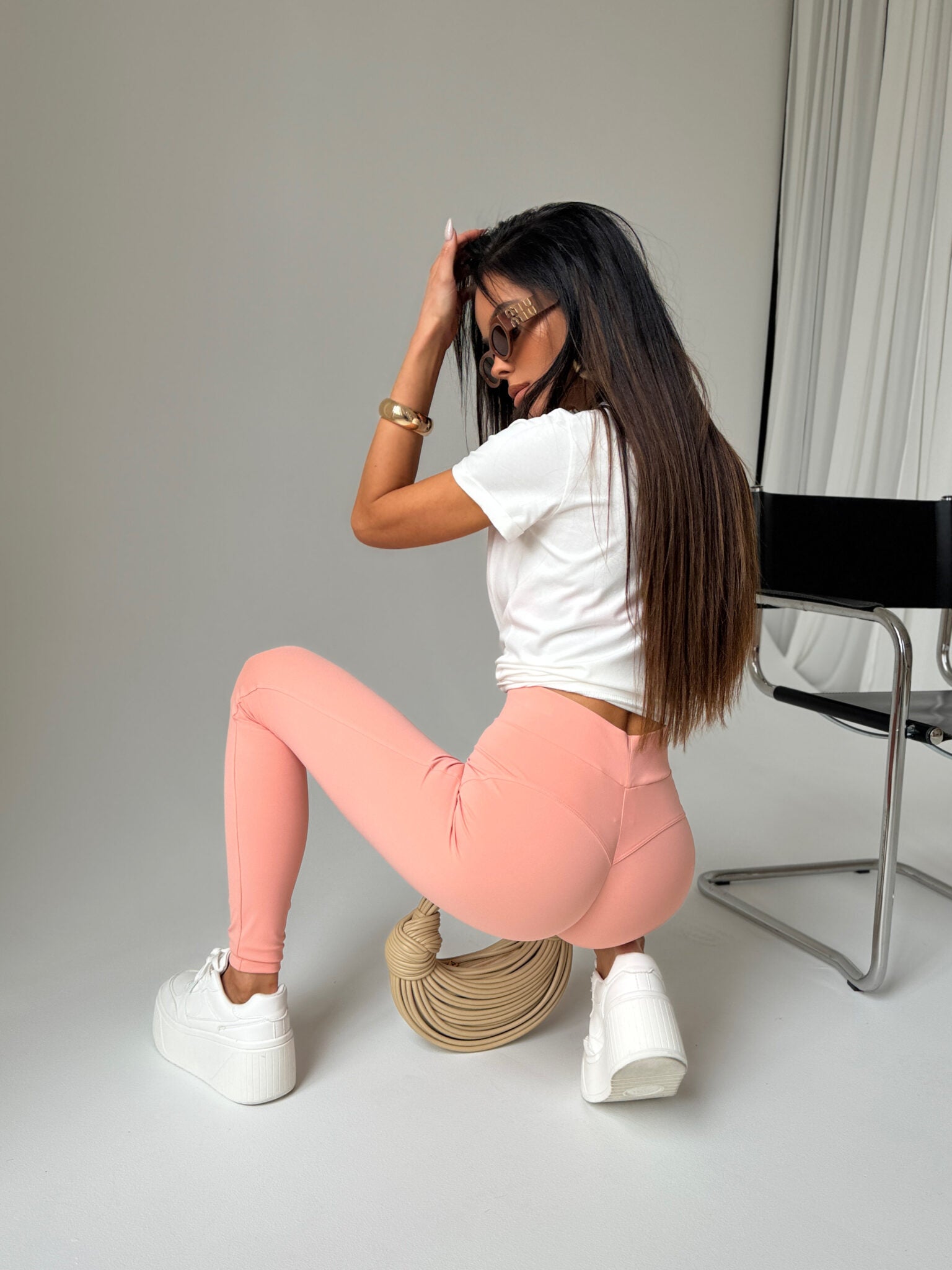 Betonen Sie Ihre Figur mit leichten Lycra-Leggings, die Komfort und Stil vereinen. Aus elastischem Material gefertigt, passen sie sich perfekt dem Körper an und gewährleisten volle Bewegungsfreiheit. Auf der Vorderseite befindet sich ein dezent gesticktes Logo, das Eleganz verleiht und diese Leggings aus der Masse hervorstechen lässt. Die einzigartige Naht auf der Rückseite der Leggings soll die Form des Gesäßes betonen und für einen formenden Effekt sorgen.