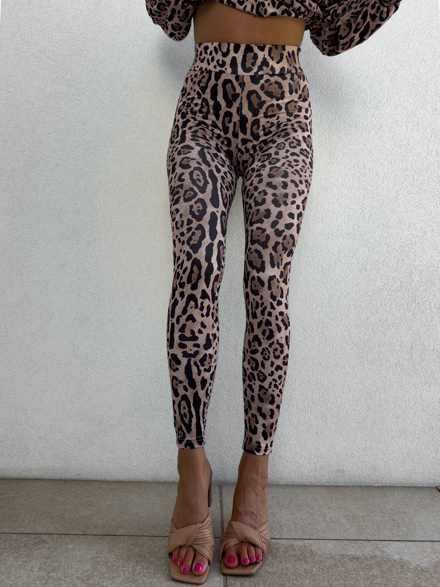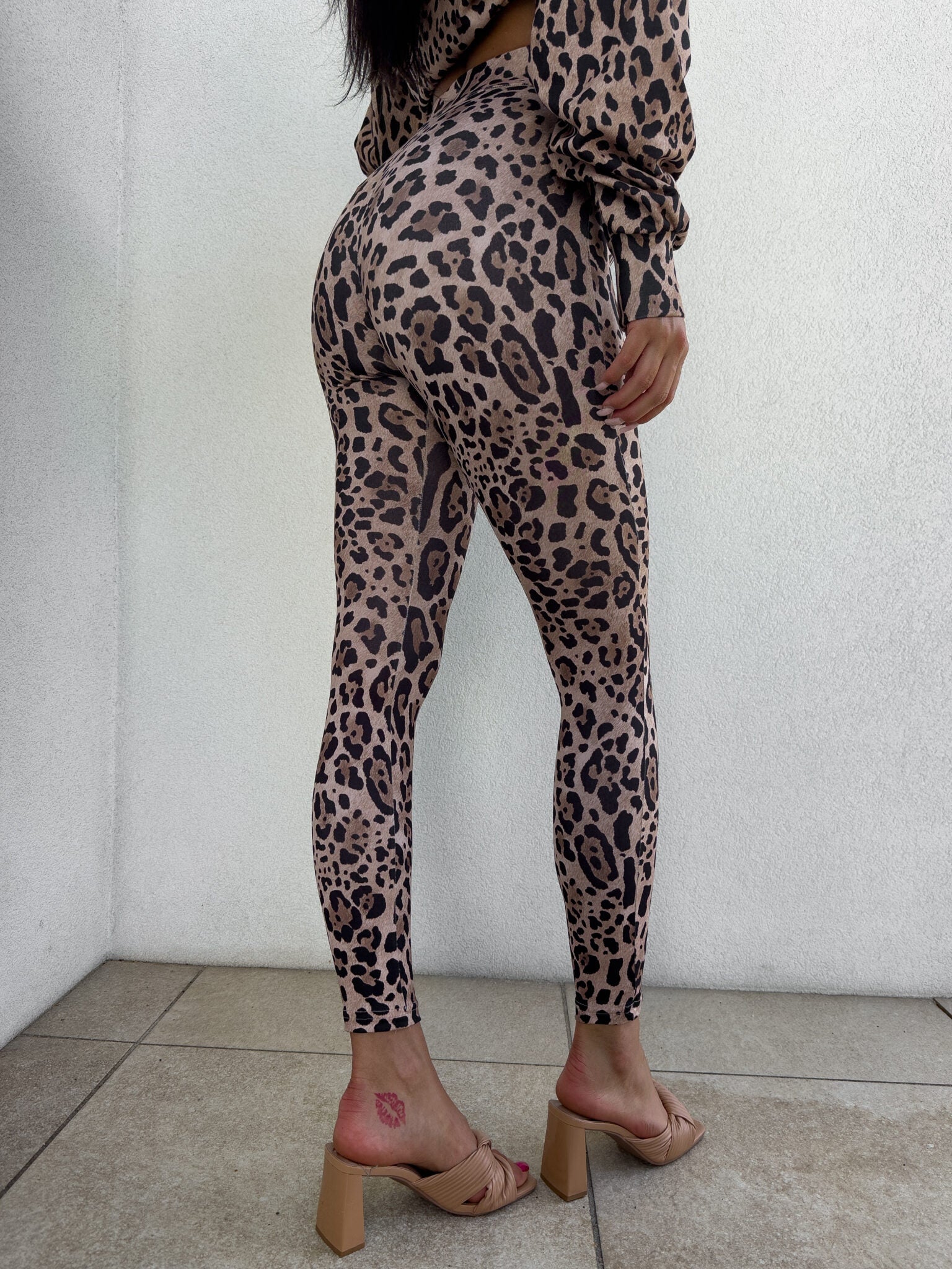 Leggings GYM Muster Panther– beige-schwarz
