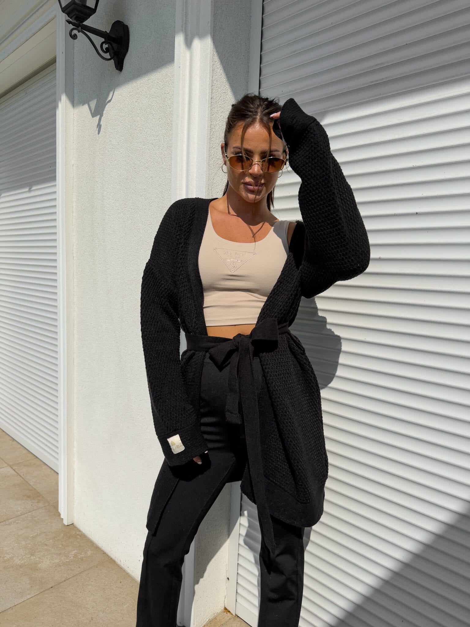 Die BURADA Strickjacke Bettdecke ist ein brillantes Modell, das Sie sogar als Tunika tragen können. Logo-Aufnäher am Ärmel. Riemen enthalten.