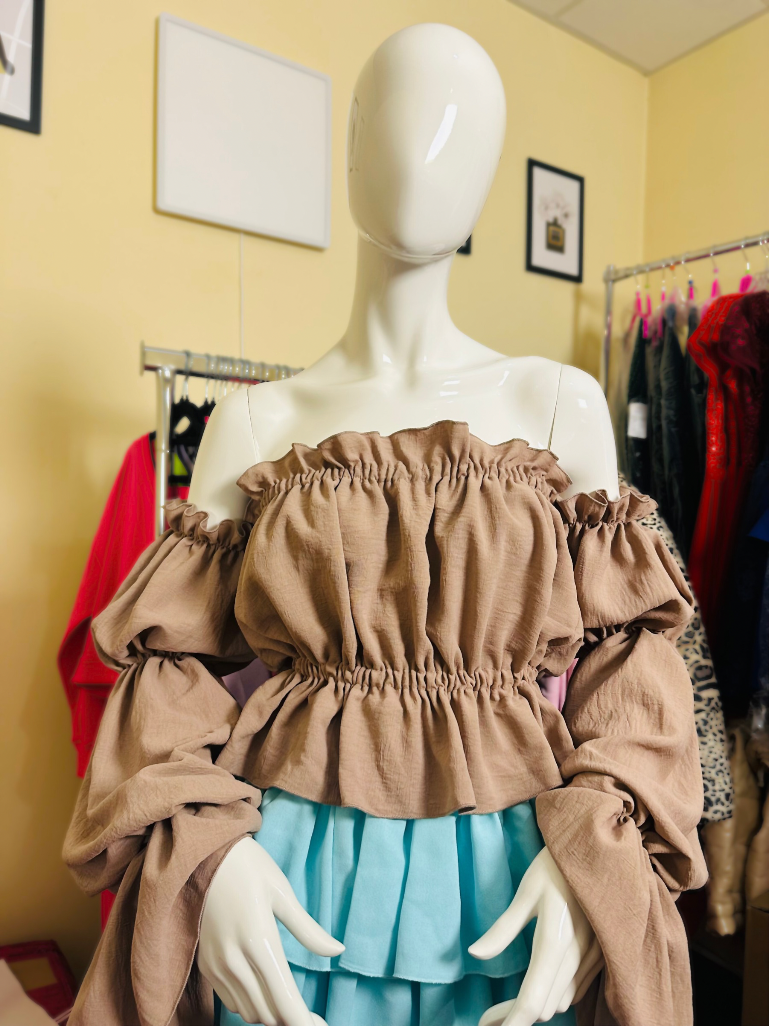 Off- Schoulder Damenbluse cappuccino
