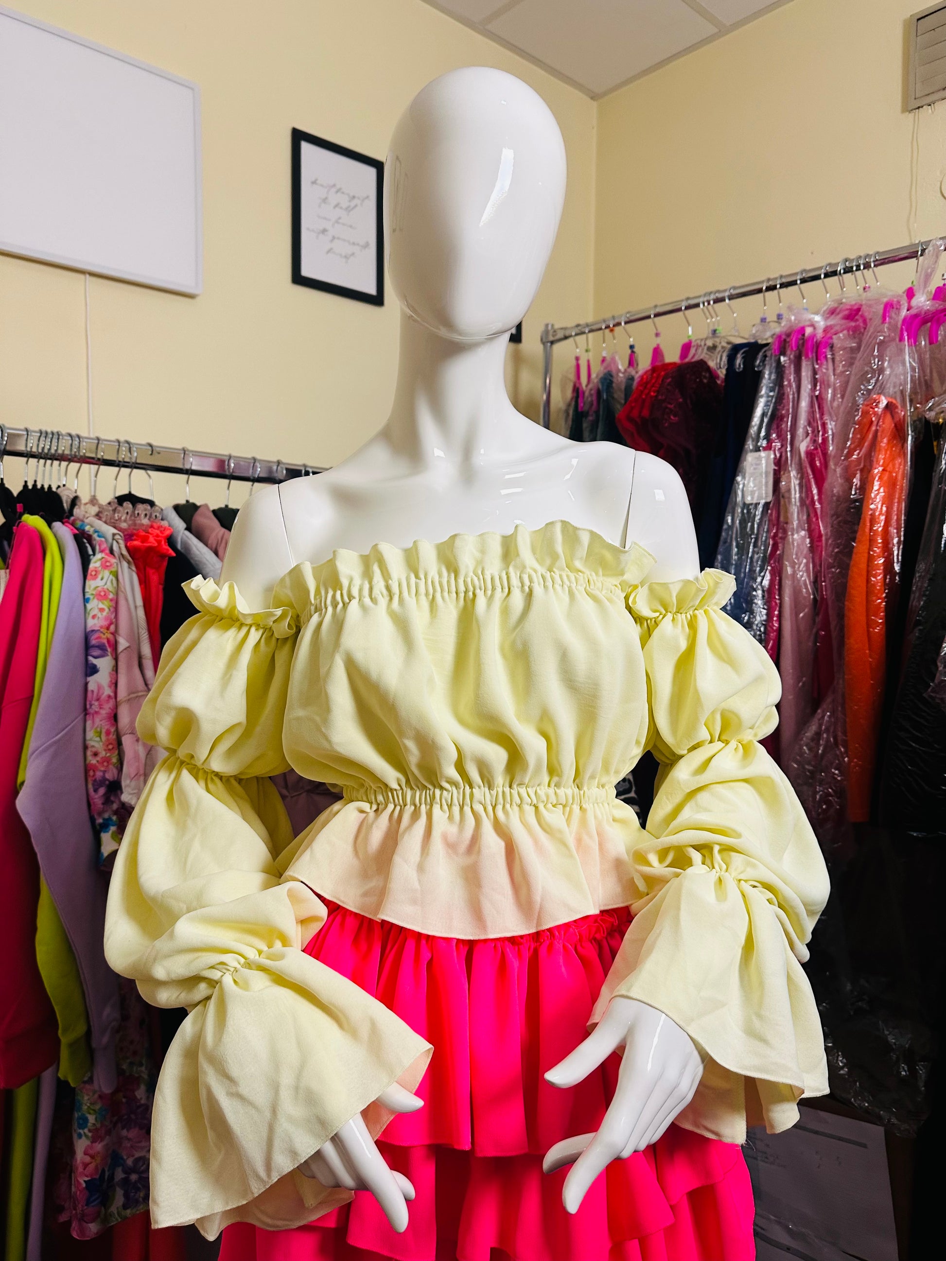 Spanische Langarmbluse des polnischen Herstellers LALU. Hergestellt aus Chiffon-Material, ideal für viele Gelegenheiten.