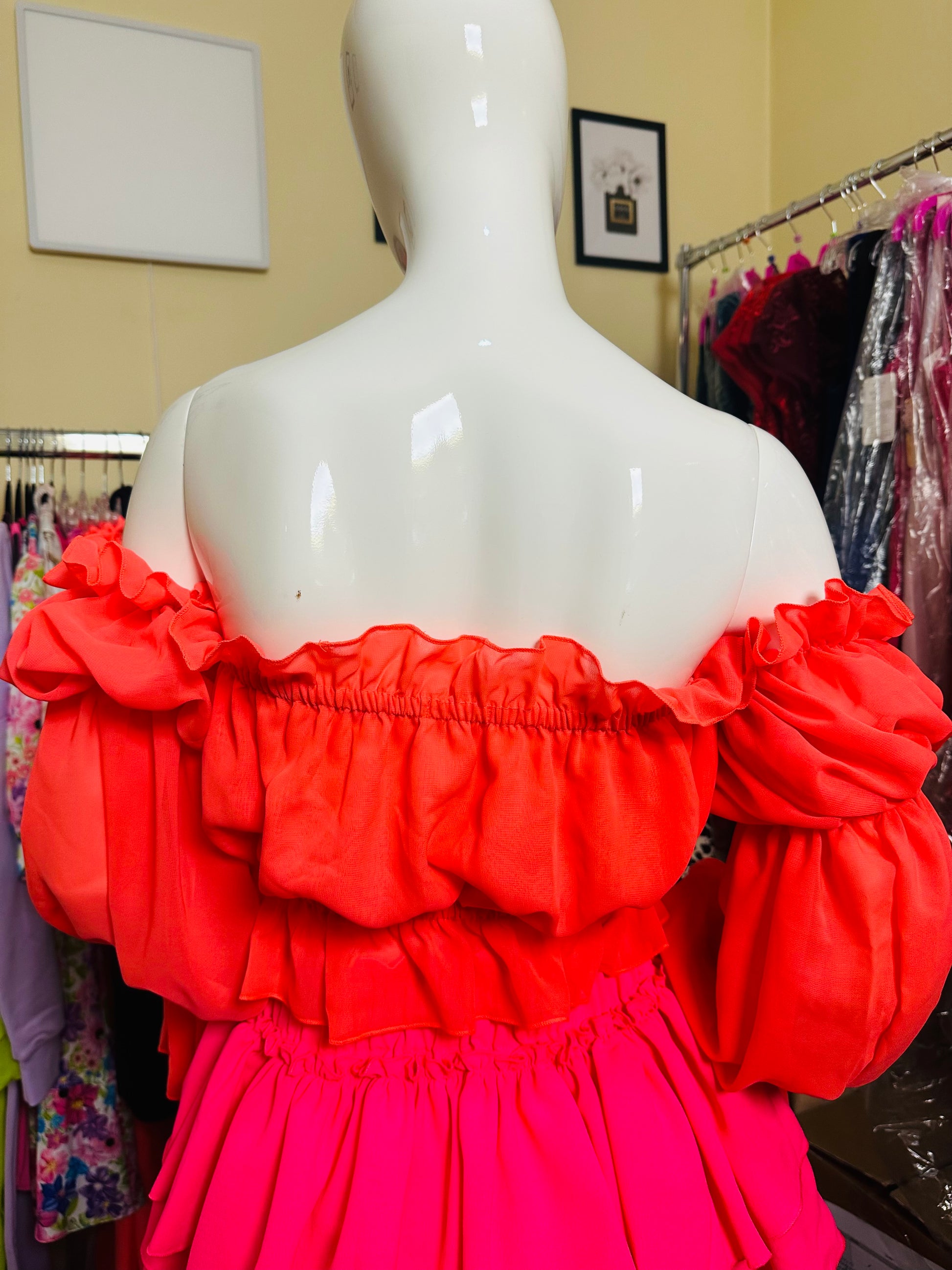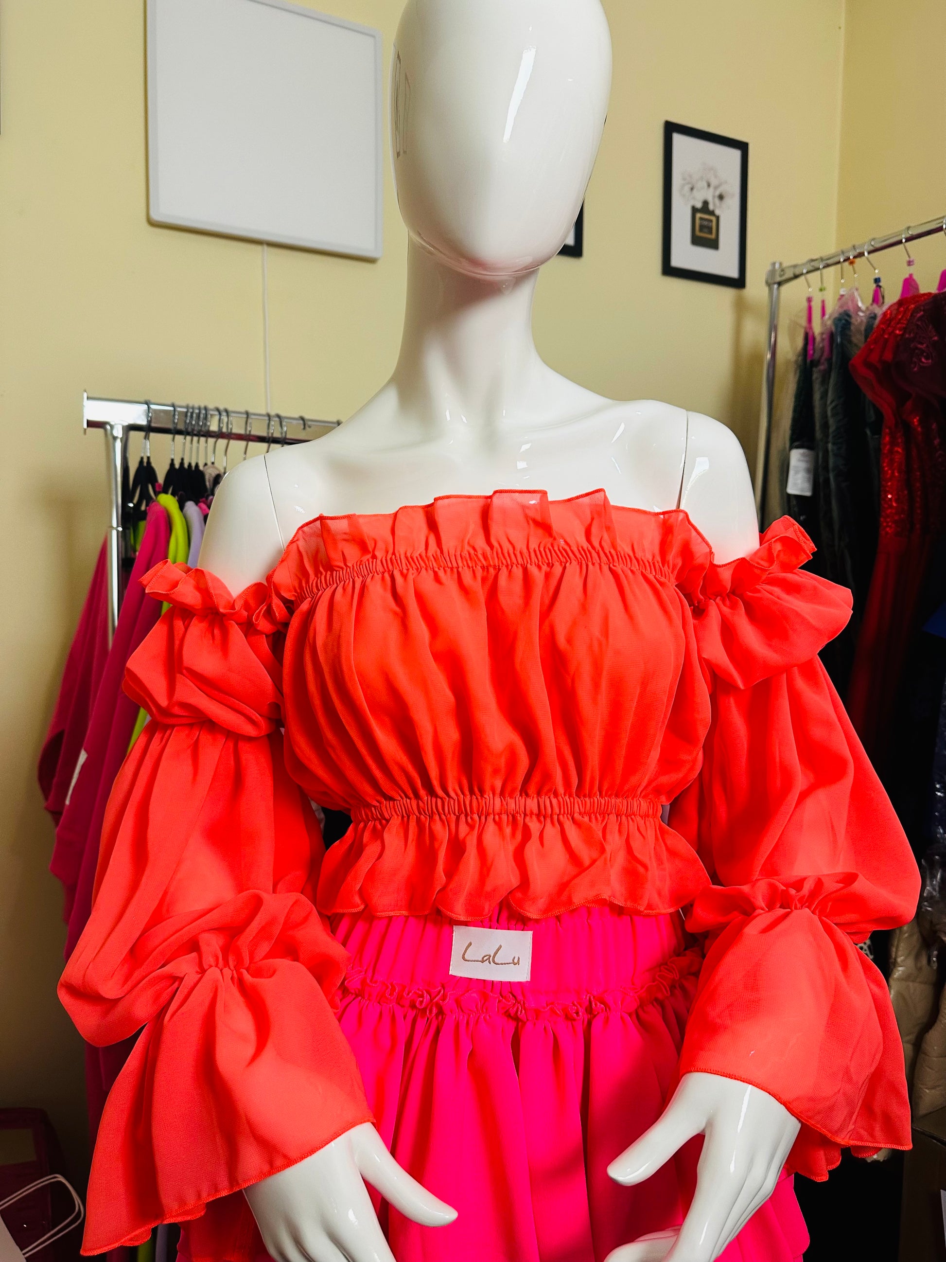 Spanische Langarmbluse des polnischen Herstellers LALU. Hergestellt aus Chiffon-Material, ideal für viele Gelegenheiten.