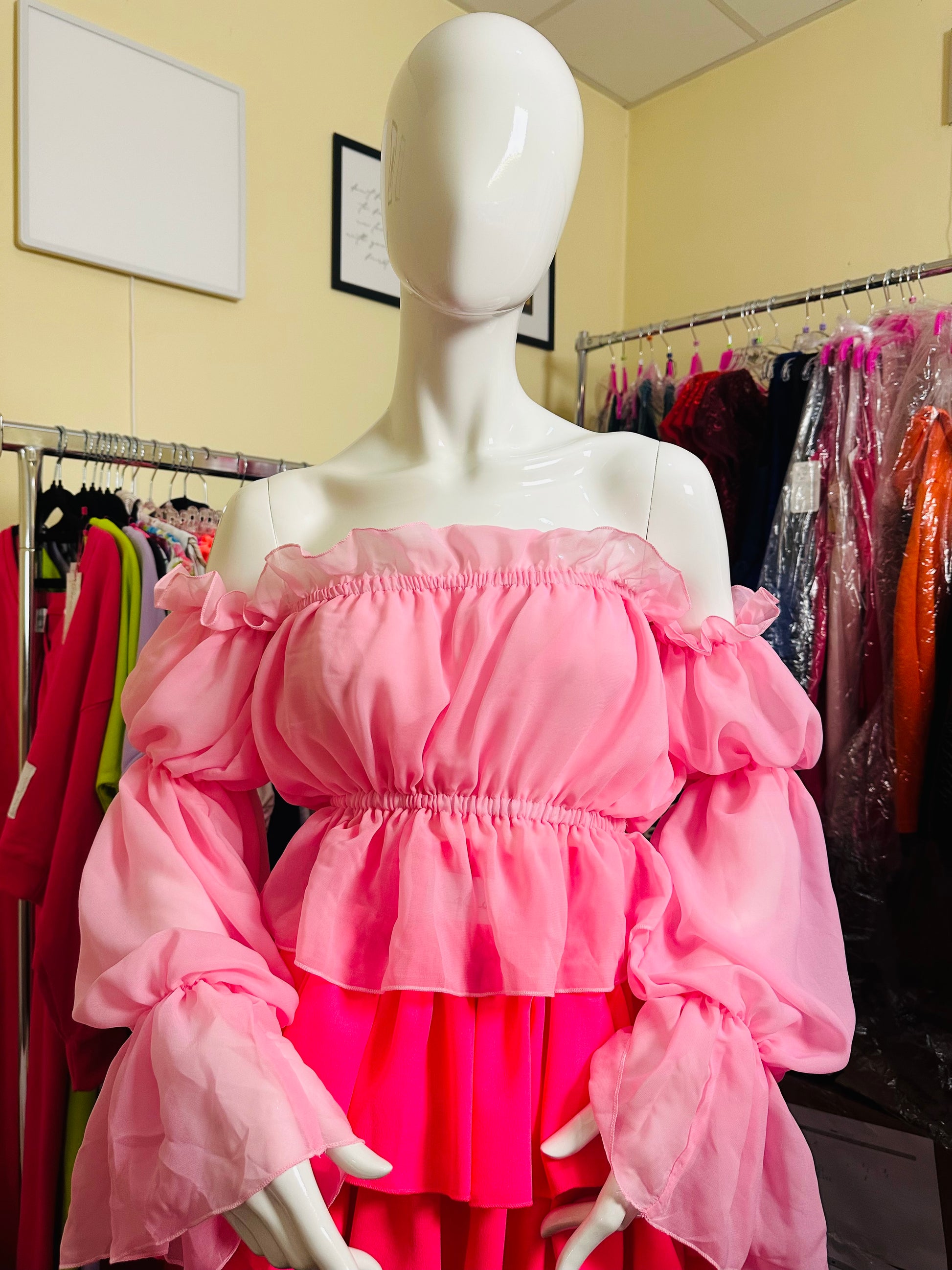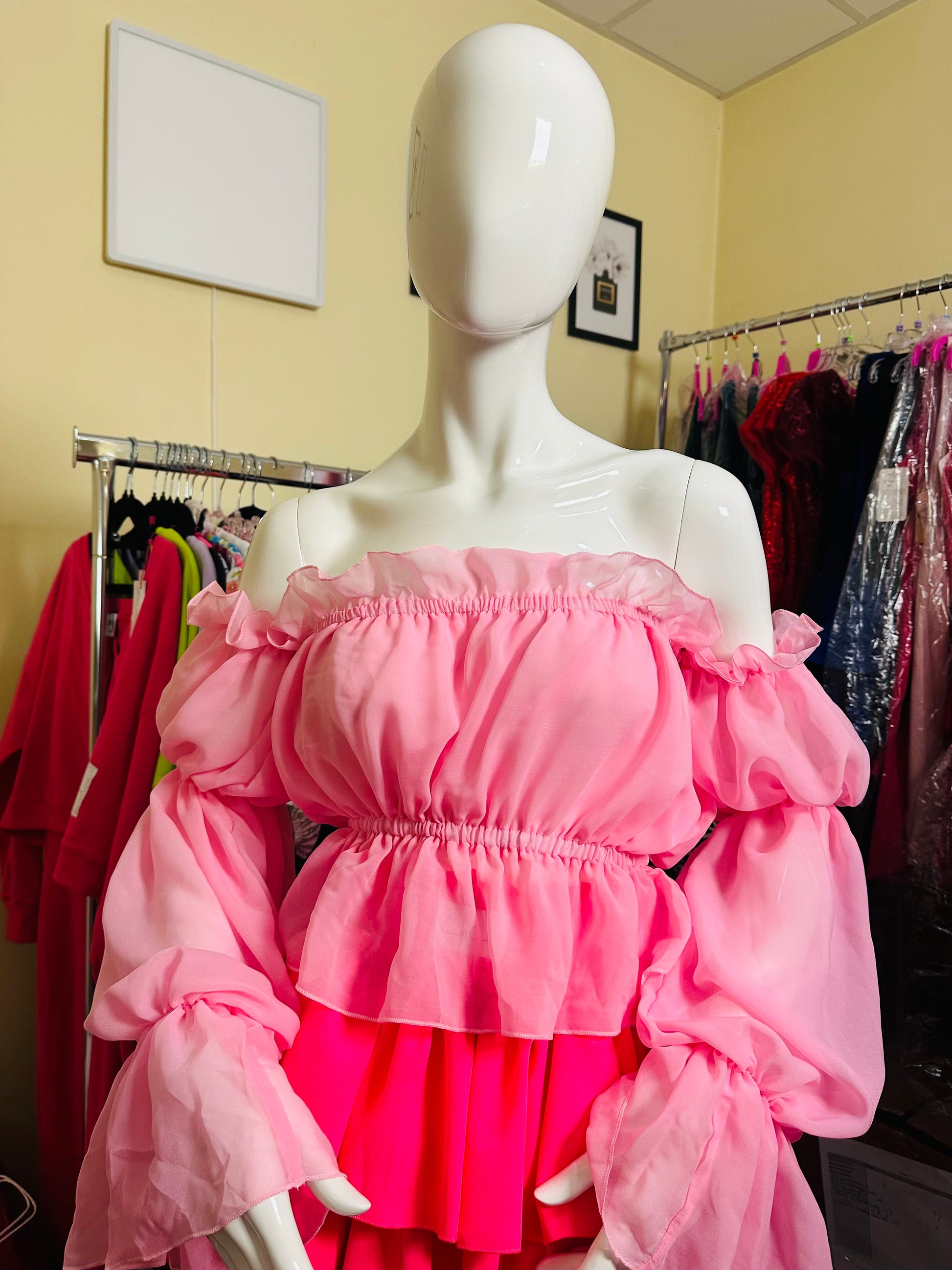 Spanische Langarmbluse des polnischen Herstellers LALU. Hergestellt aus Chiffon-Material, ideal für viele Gelegenheiten.