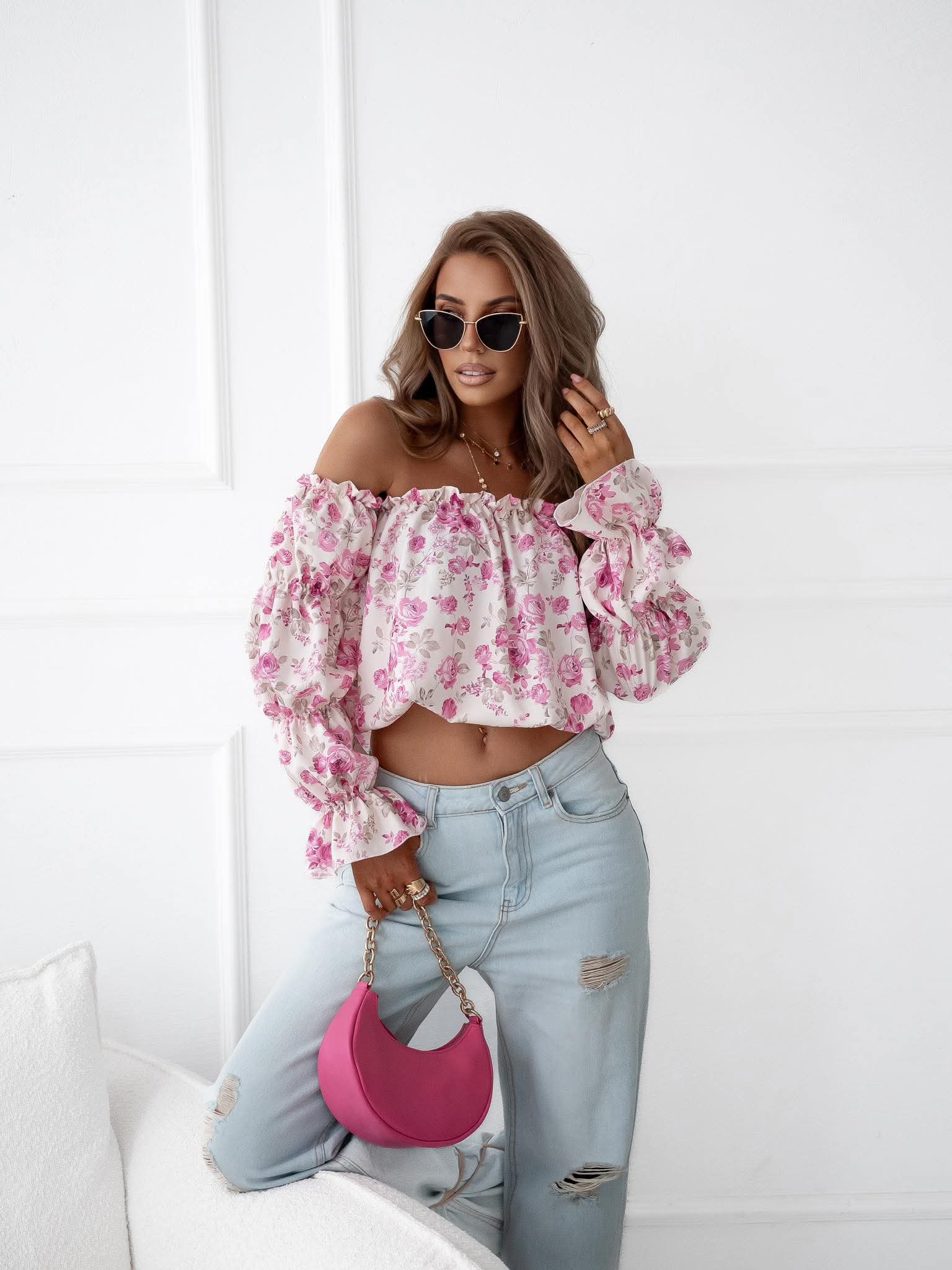 Off- Schoulder Damenbluse Rosen