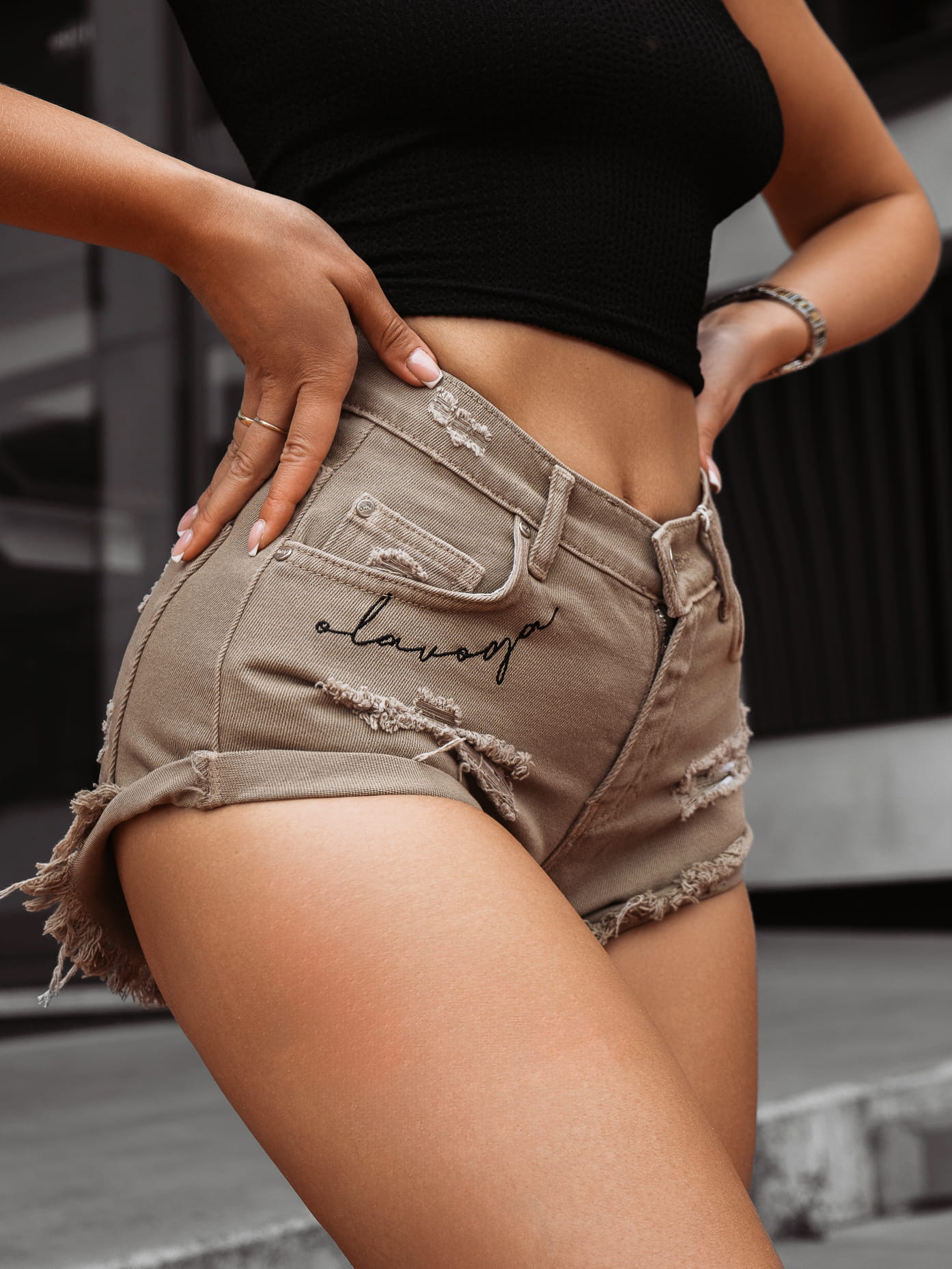 Ragged-Shorts der Marke Ola Voga sind das perfekte Angebot für alle, die ausdrucksstarke und originelle Styles mögen. Kurze Shorts mit zerrissenem Effekt an den Beinen verleihen Charakter und lassen sie sehr modisch aussehen.