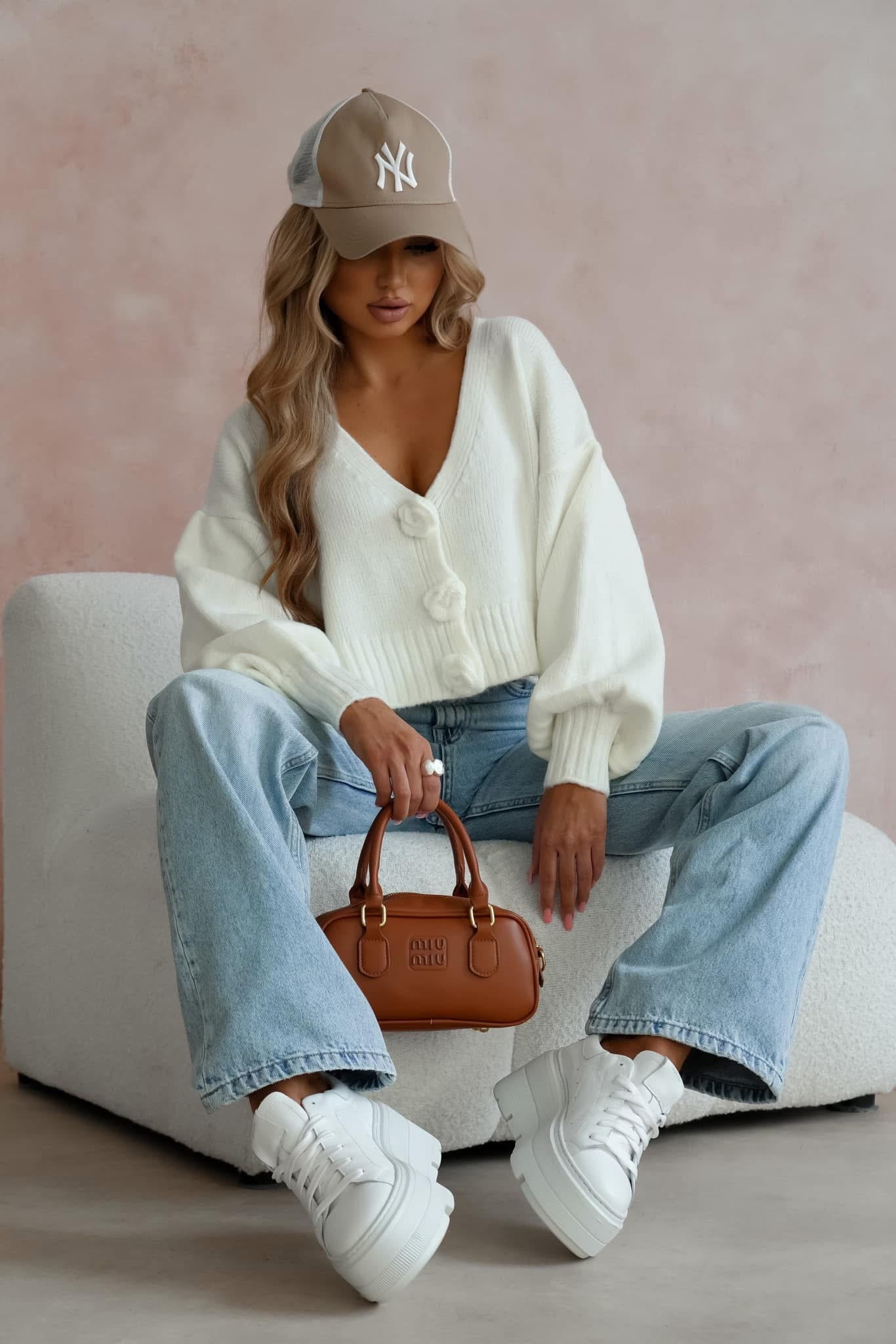Dieser trendige Oversized-Strickcardigan vereint Komfort und Stil auf perfekte Weise. Das weiche, hochwertige Material sorgt für ein angenehmes Tragegefühl, während die lockere Passform für einen modernen, entspannten Look sorgt. Ein besonderes Highlight sind die auffälligen Knöpfe, die dem Cardigan eine verspielte und stilvolle Note verleihen.