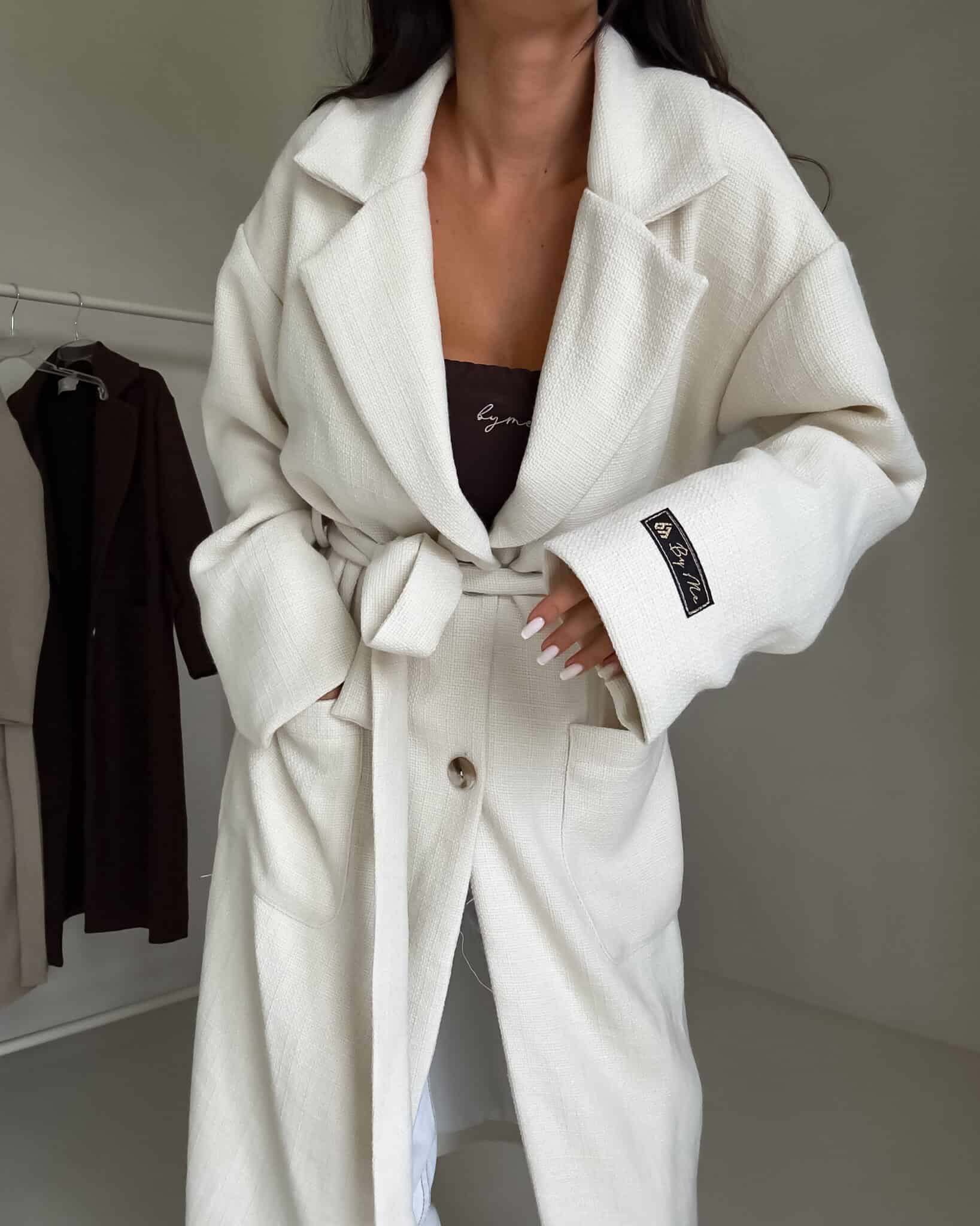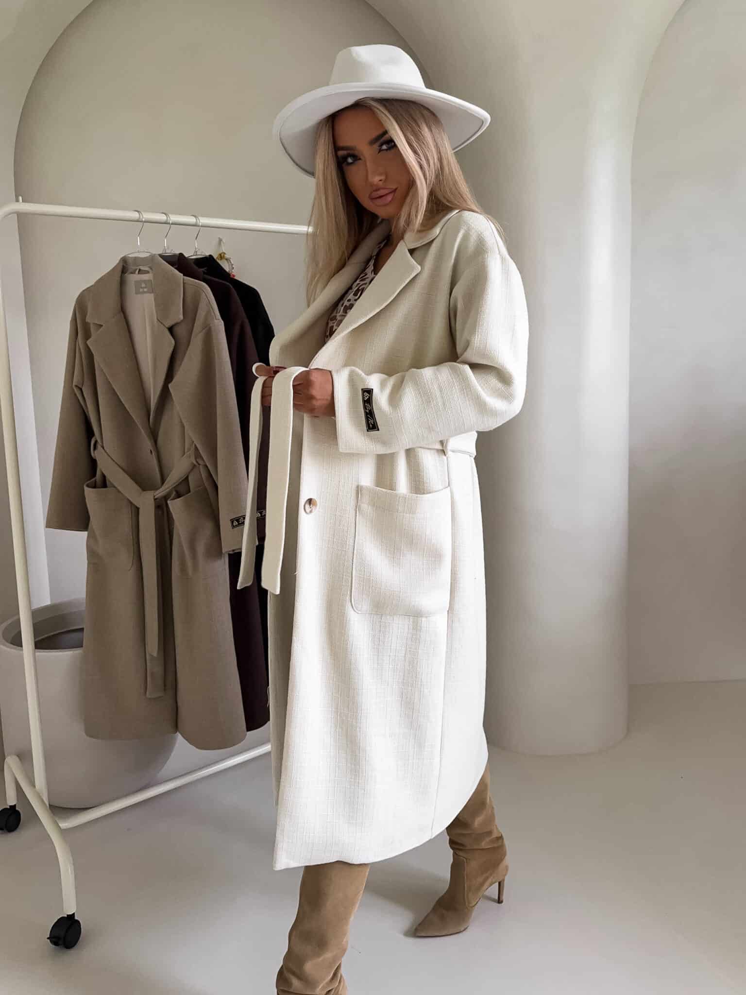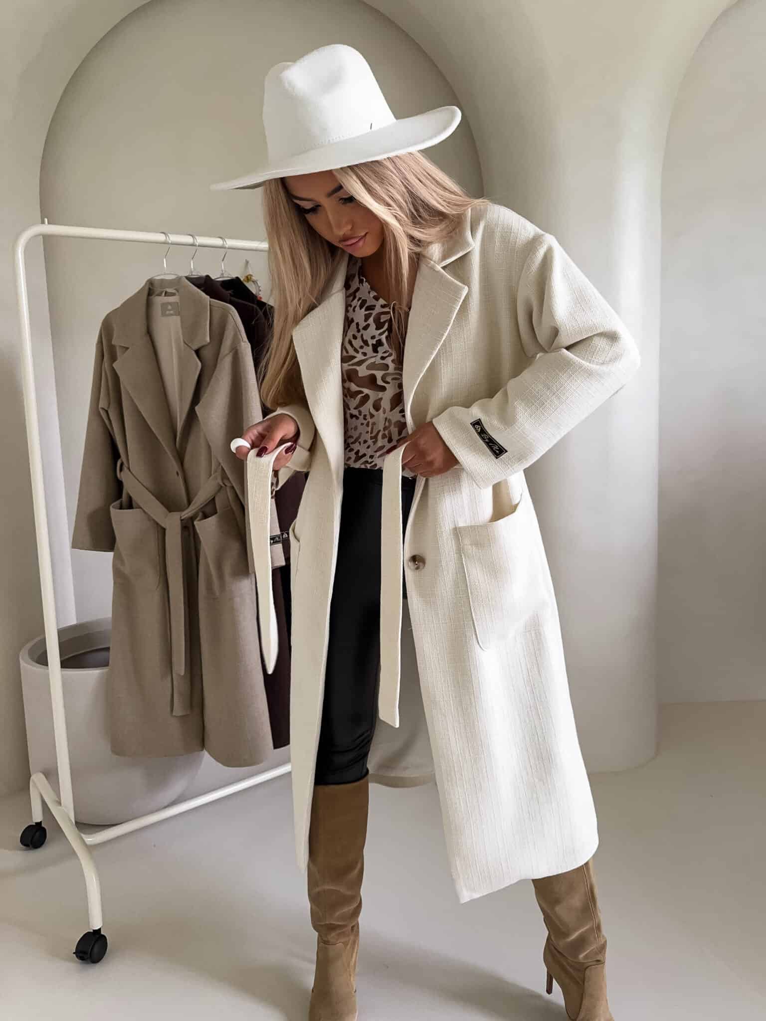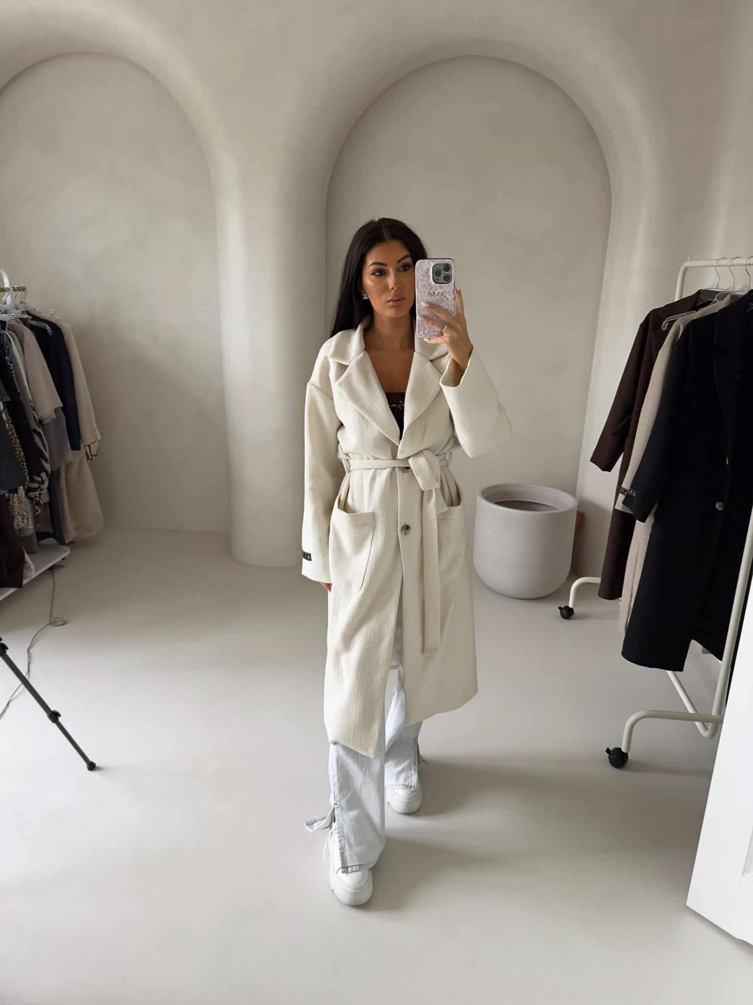 Eleganter Damenmantel mit Knielänge. Der lockere, übergroße Schnitt bietet Bewegungsfreiheit.